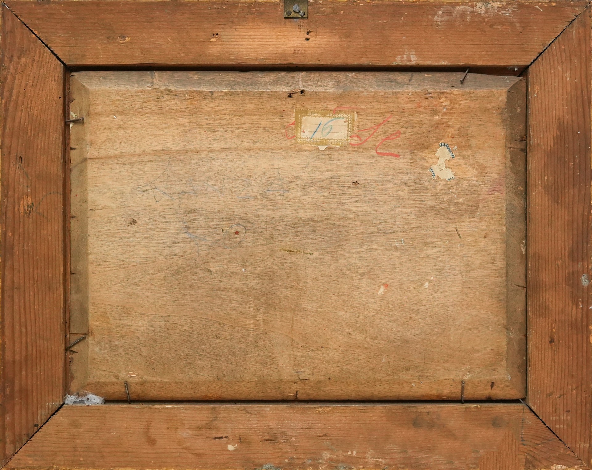Paesaggio con uomo a cavallo, fine 19th H cm 24,5x34 - in cornice H cm 35x45 olio su tavola