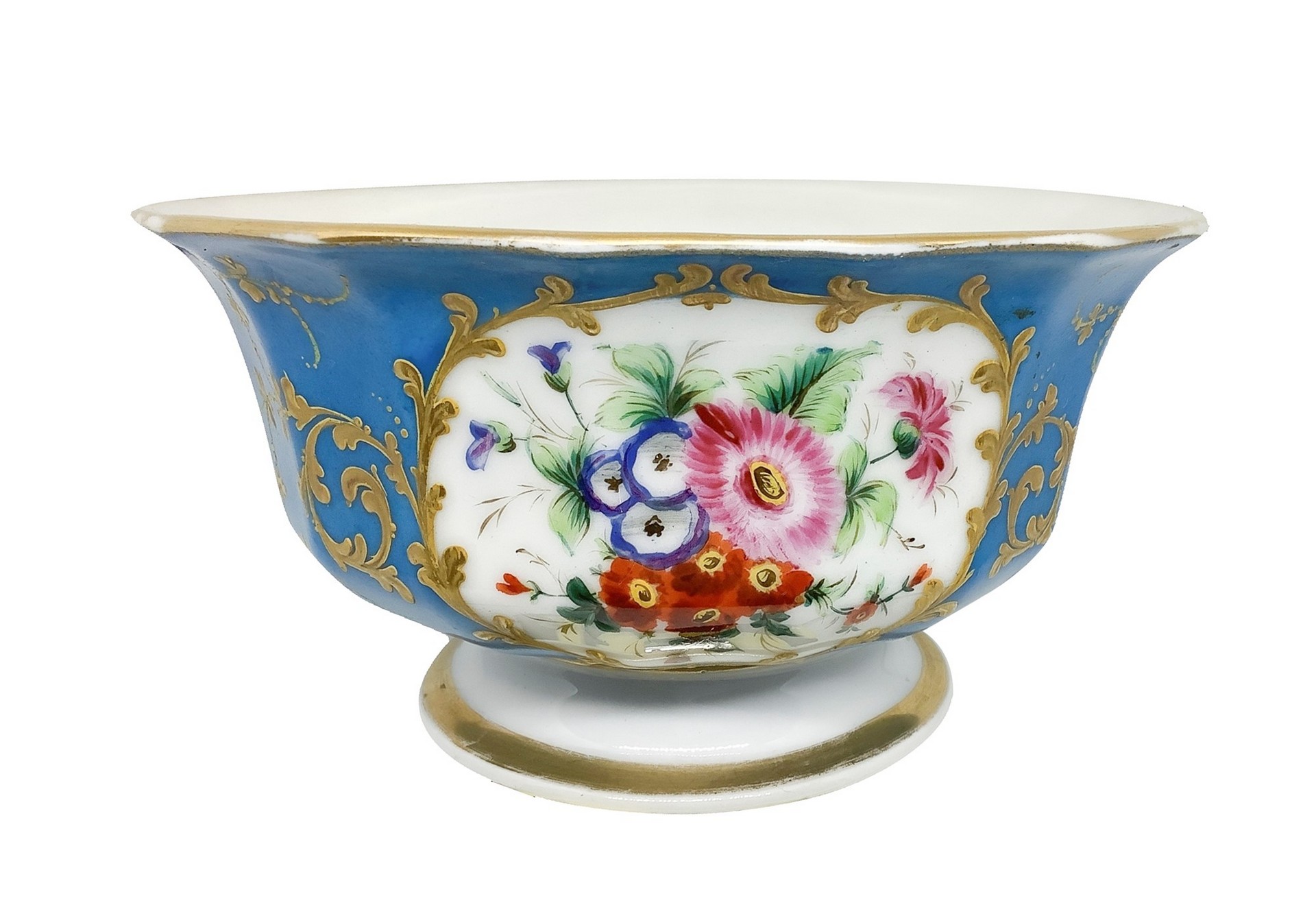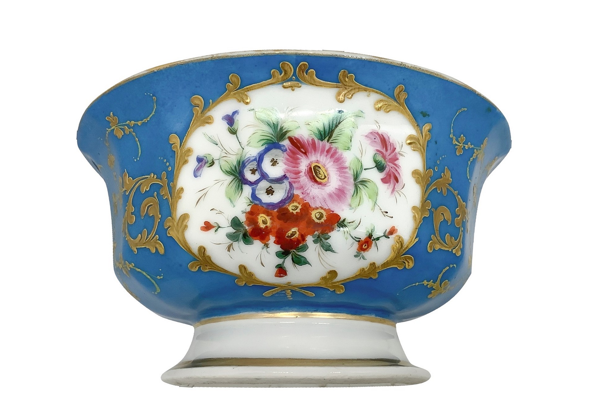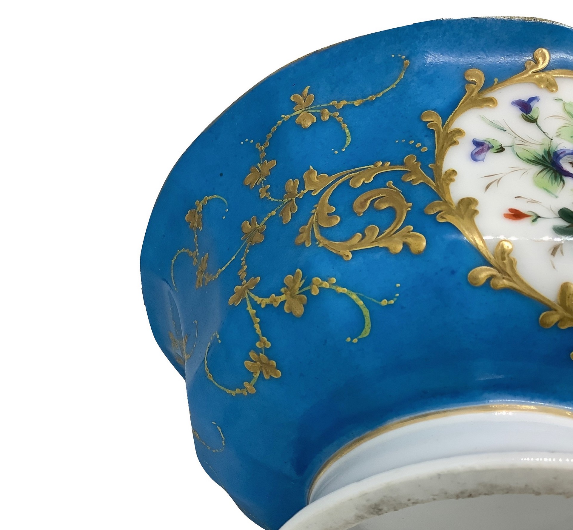 Portadolci smaltato in azzuro e oro con decorazioni floreali, 20th cm. 10 x 19,5 Porcellana policroma dipinta a mano