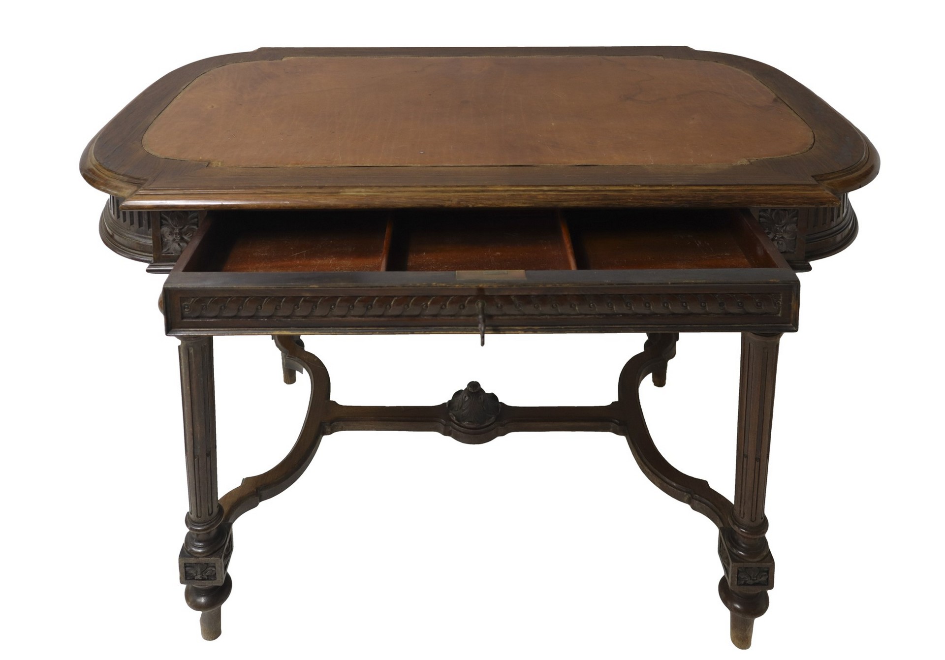 Tavolino ovale con cassetto e piano in pelle, fine 19th