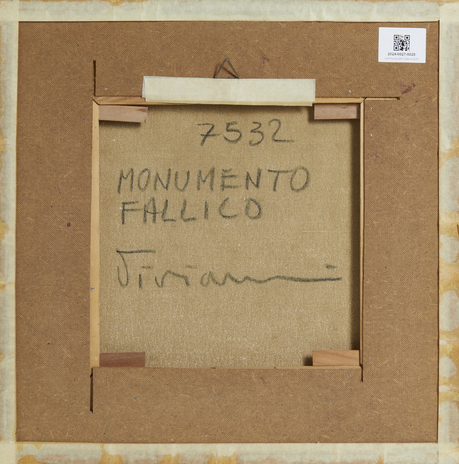 VIVIANI VANNI (1937 - 2002) MONUMENTO FALLICO. Tecnica mista su tela. Cm 48,50 x 48,50. sul retro: firma e titolo. Cornice presente