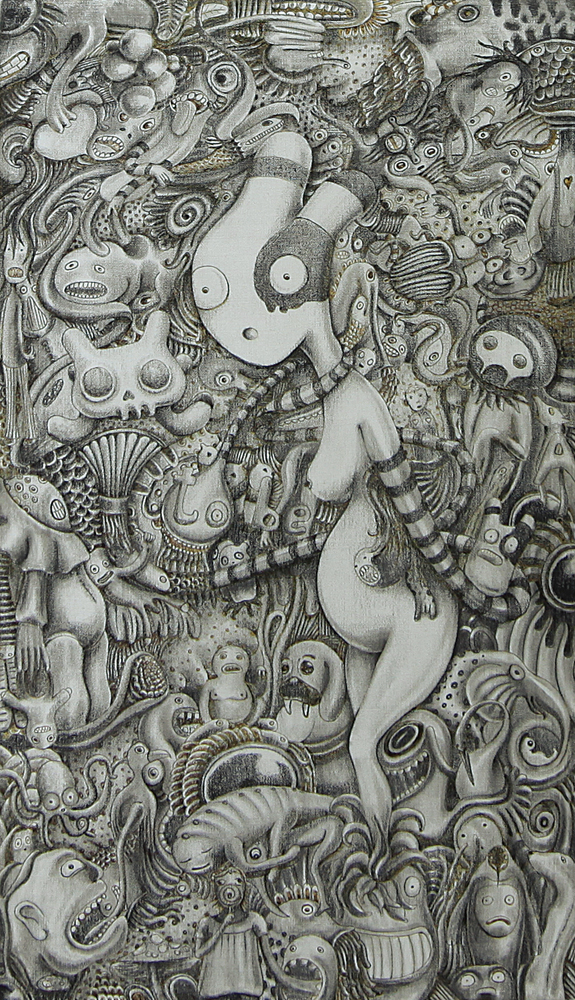 grafite e inchiostri su tela cm. 42,3x24x4,3; firme, titolo e anno al retro, dichiarazione d'autenticità degli artisti su certificato allegato, Menzione Speciale della giuria alla III edizione del Premio Arte Piacenza Nuovi Talenti, opera priva di cornice.