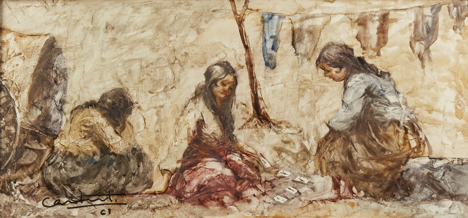 CASTELLI MARTI JUAN (1915 - 1995) NAVIDAD, 1969. olio su tela. Cm 77,00 x 37,50. firma e data. Cornice presente