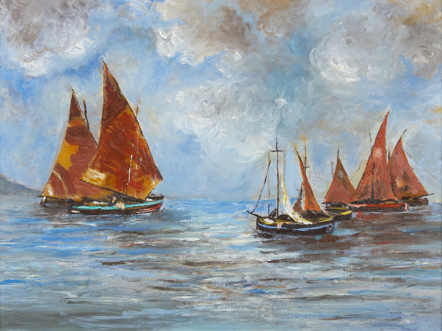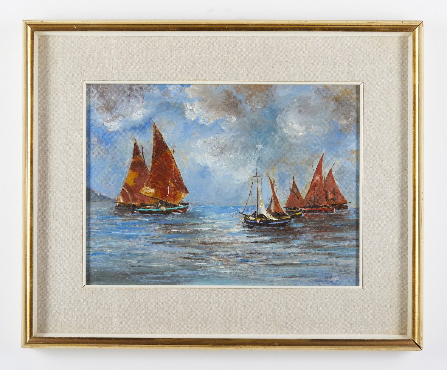 AUTORE NON IDENTIFICATO BARCHE. olio su tela. Cm 38,00 x 28,00. . Cornice presente
