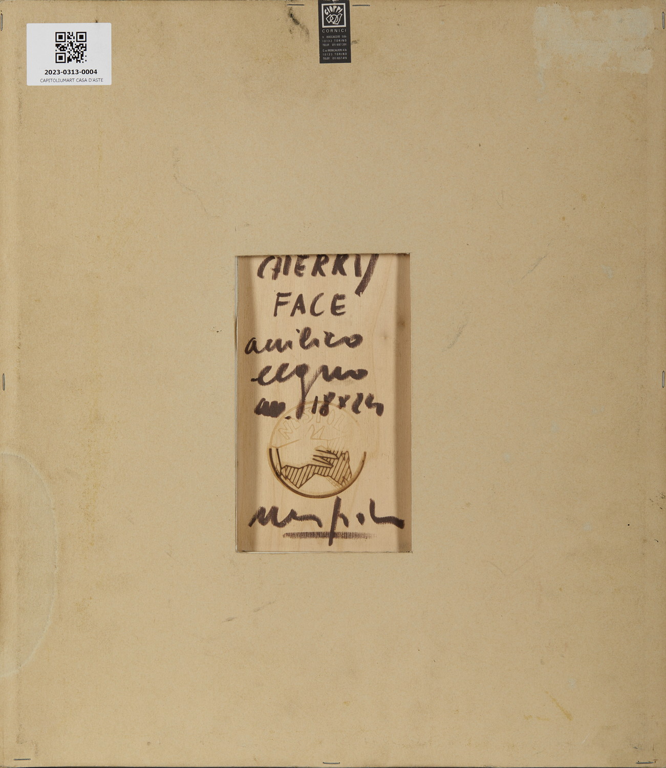 NESPOLO UGO (n. 1941) CHERRY FACE. Acrilico su legno. Cm 18,00 x 24,00. firma.