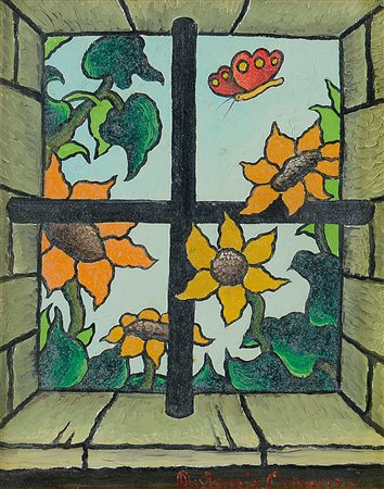 CAPUZZO ANTONIO Padova 1956Fiori dalla finestraolio su tela cm. 30x24, firma...