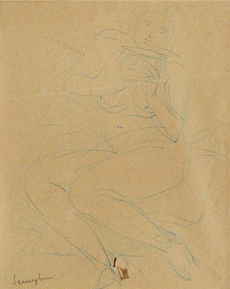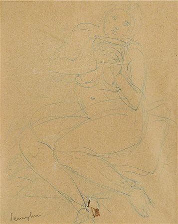 matita su carta, cm. 17,5x13,5; firma in basso a sinistra, presenta un foro in basso al centro, timbro e firma per autentica del pittore Mariano Imperatori al retro.
