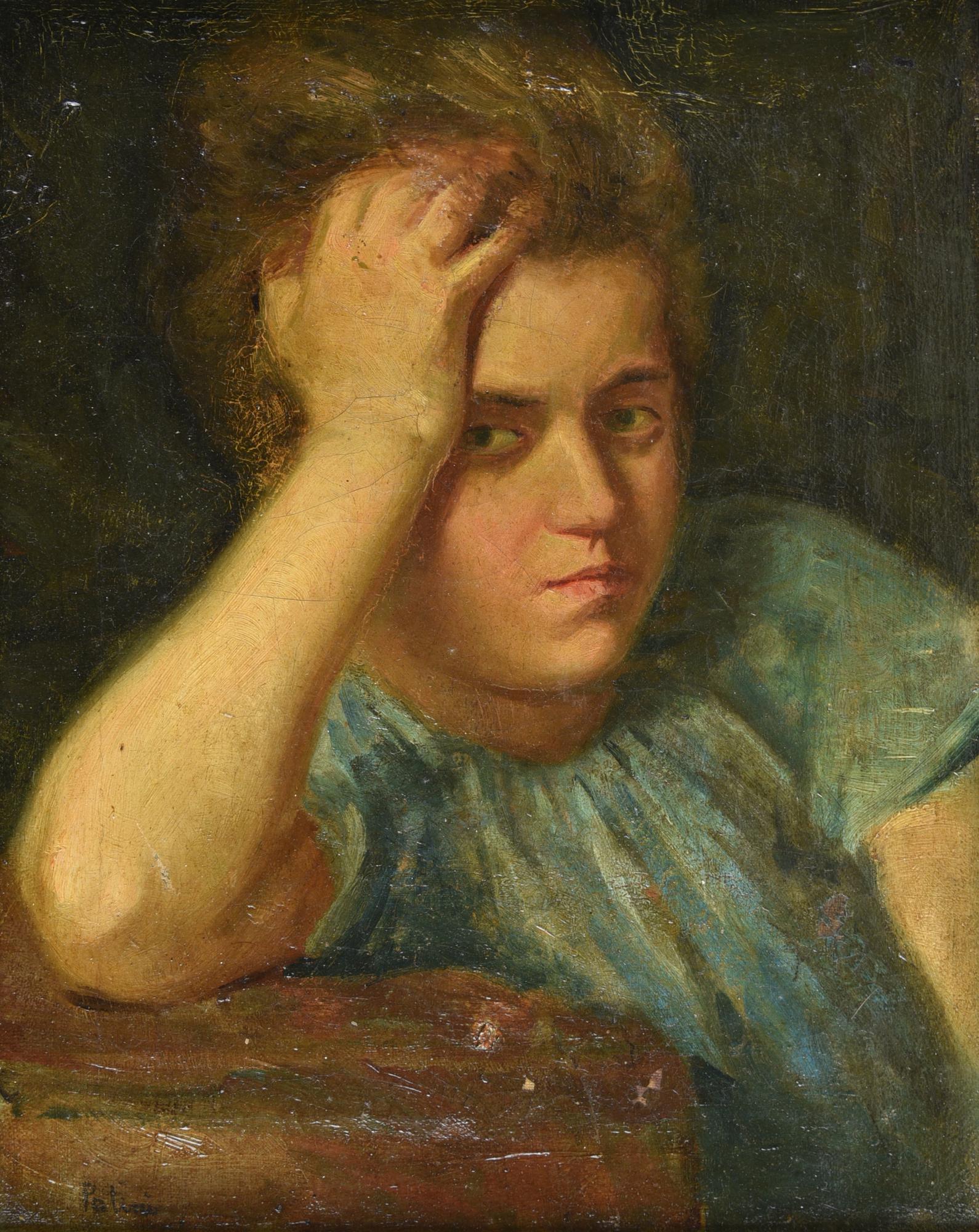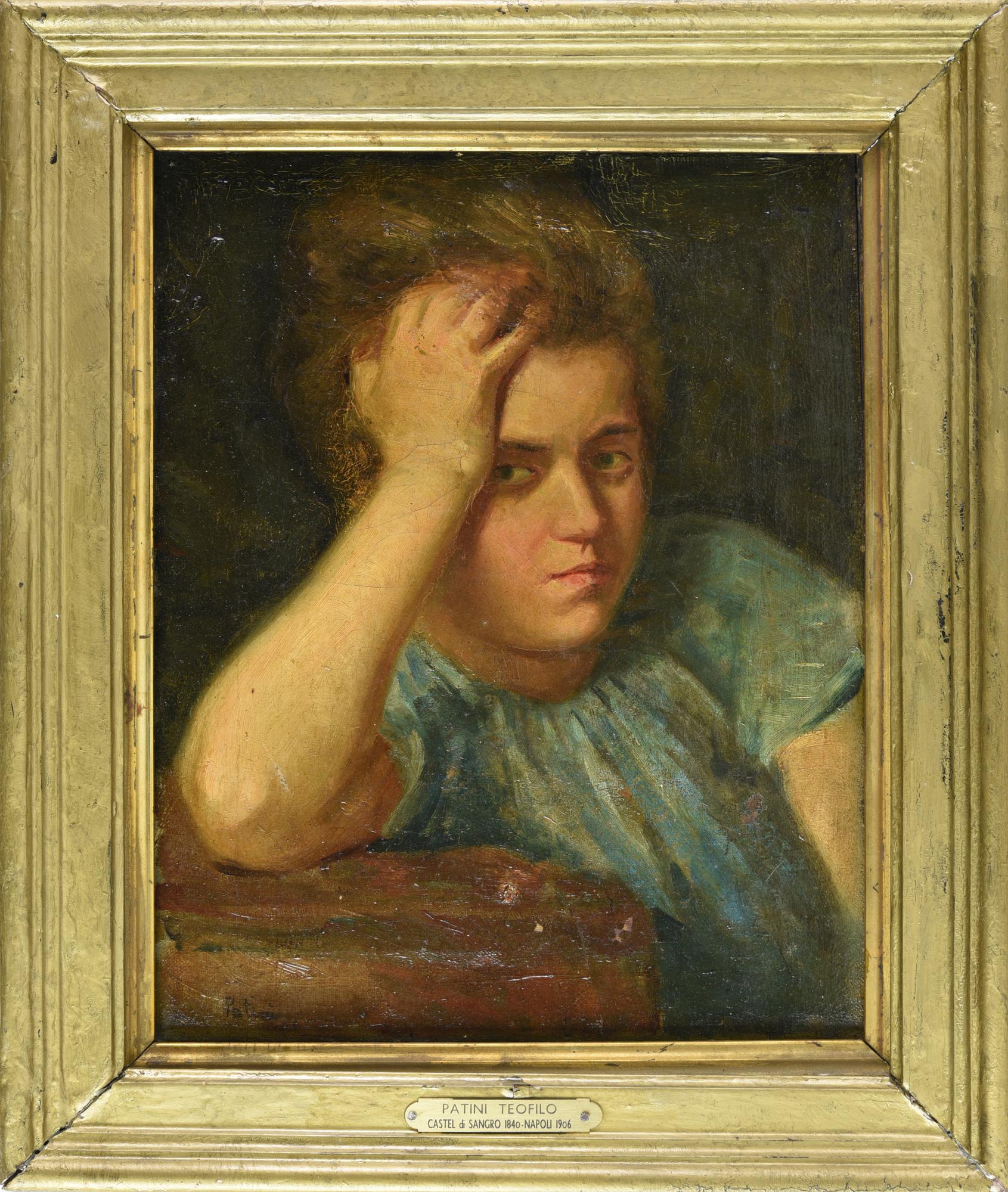 Teofilo Patini FANCIULLA PENSOSA olio su tela, 28,9X22 cm firma Provenienza...