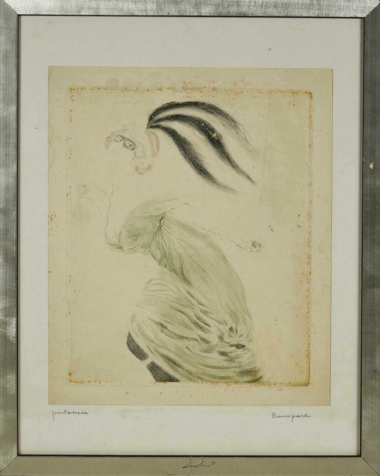 Maurice Bompard FIGURA FEMMINILE IN MASCHERA puntasecca, cm 32x26, su foglio...
