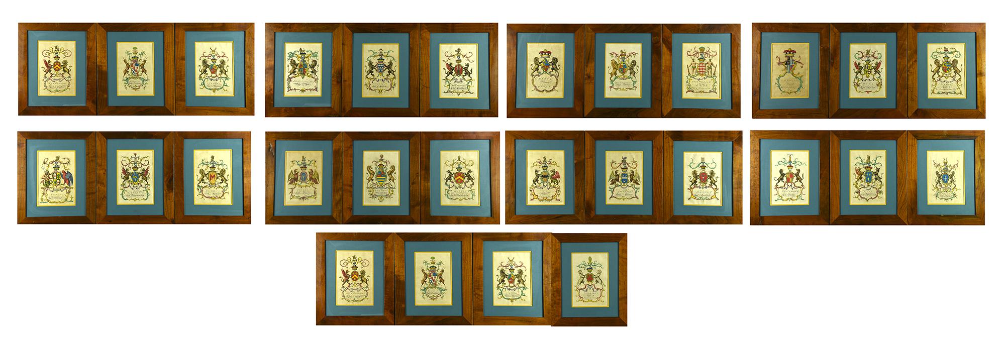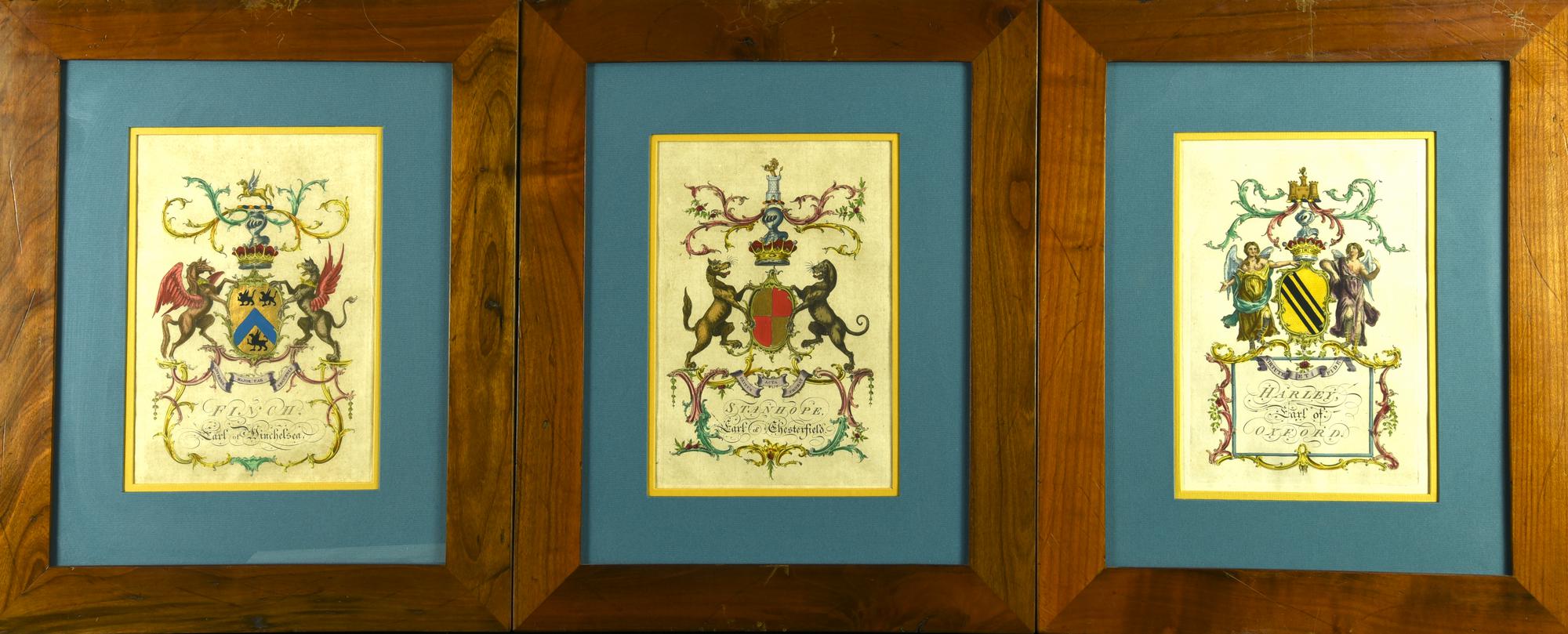Scuola del XVIII secolo STEMMI ARALDICI DI FAMIGLIE INGLESI stampe a colori...