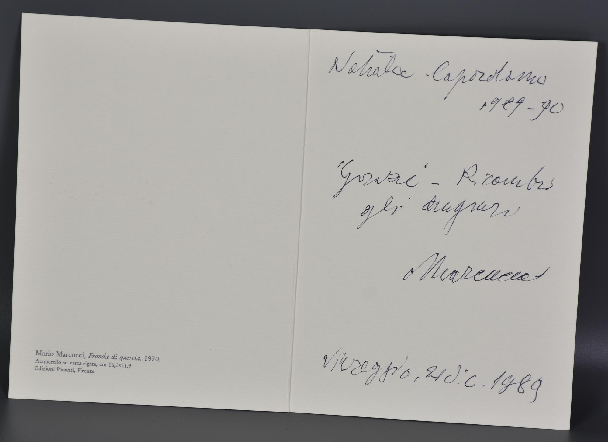 Mario Marcucci BIGLIETTO DI AUGURI, 1989 raffigurante "Fronda di quercia"...