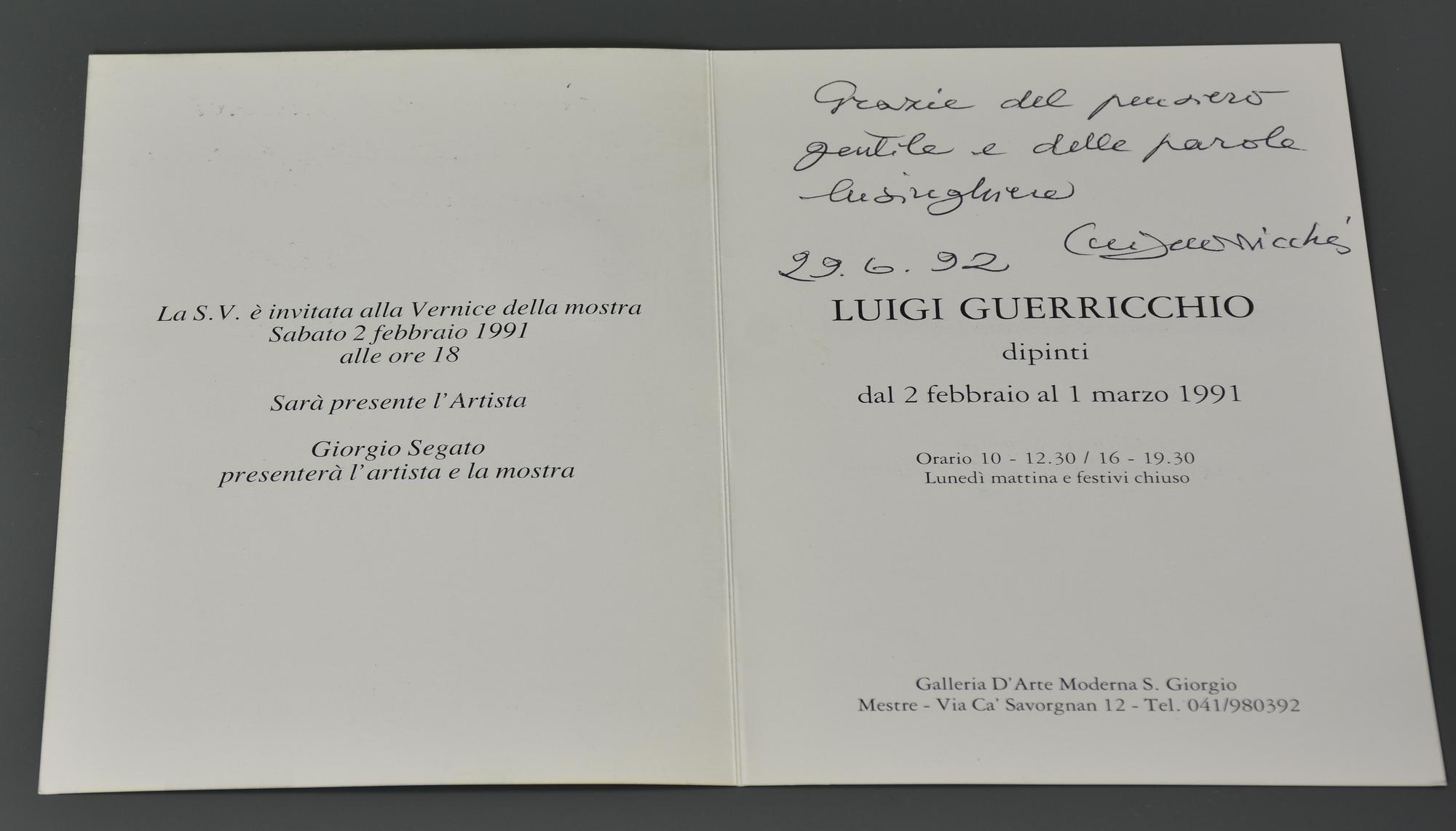 Luigi Guerricchio INVITO, 1991 applicazione su cartoncino, cm 15,5x11,5...