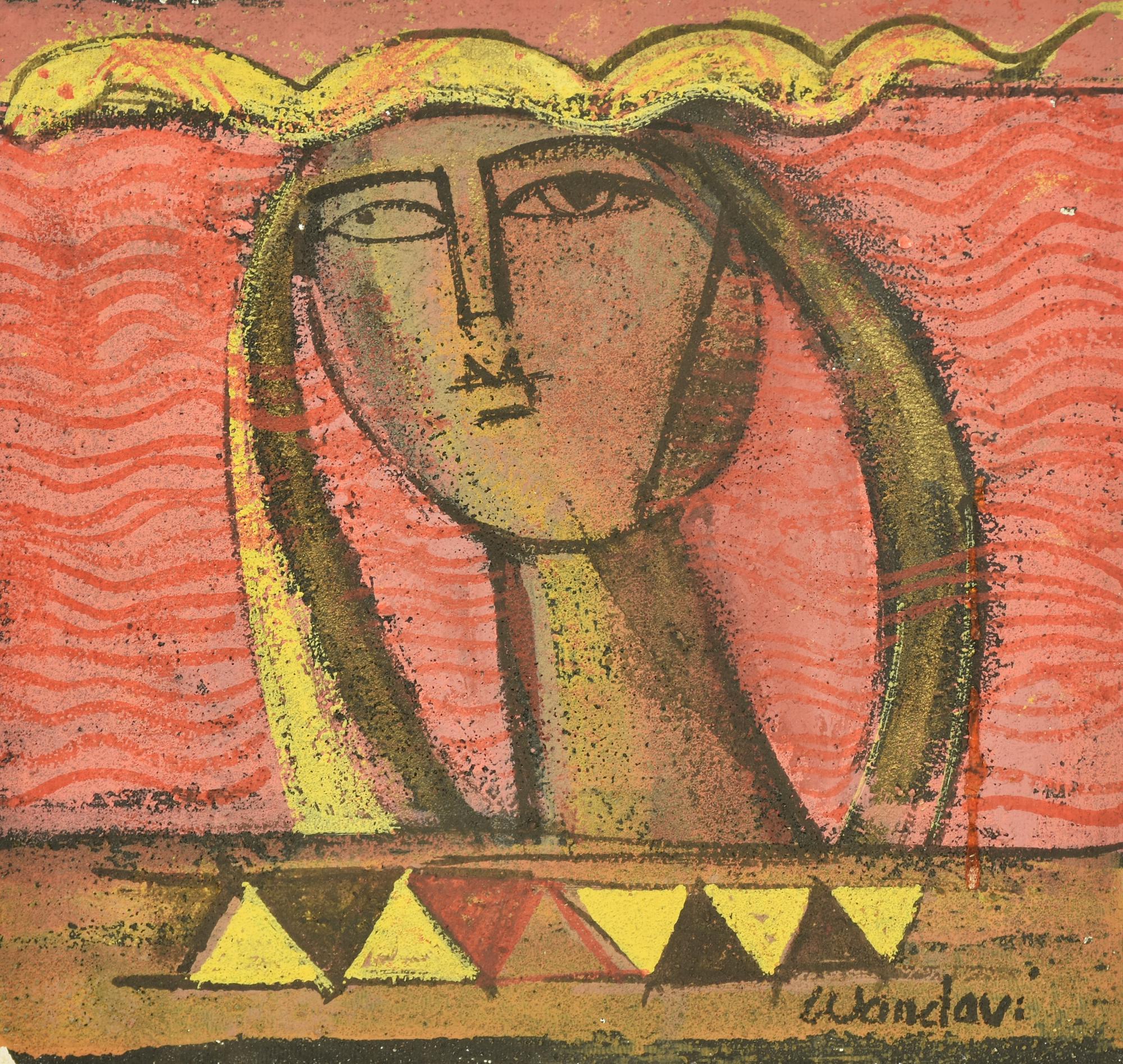 Mohamed Wandavi LA TRECCIA tecnica mista su tela, cm 30x30 firma sul retro:...