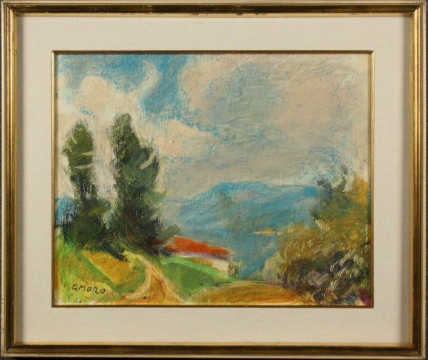 MORO GINO - Milano, 1901-1977. Ha conseguito importanti premi in Italia e all'estero, partecipando alla Biennale di Venezia del 1932, all'Internazionale di Parigi del 1938 e alla Quadriennale di Roma dal 1938 in avanti. Dipinto olio su tela raff. ''PAESAGGIO MONTANO''. Firmato in basso a sinistra. In cornice. Mis. Lung. cm. 50 Alt. cm. 40 ca.