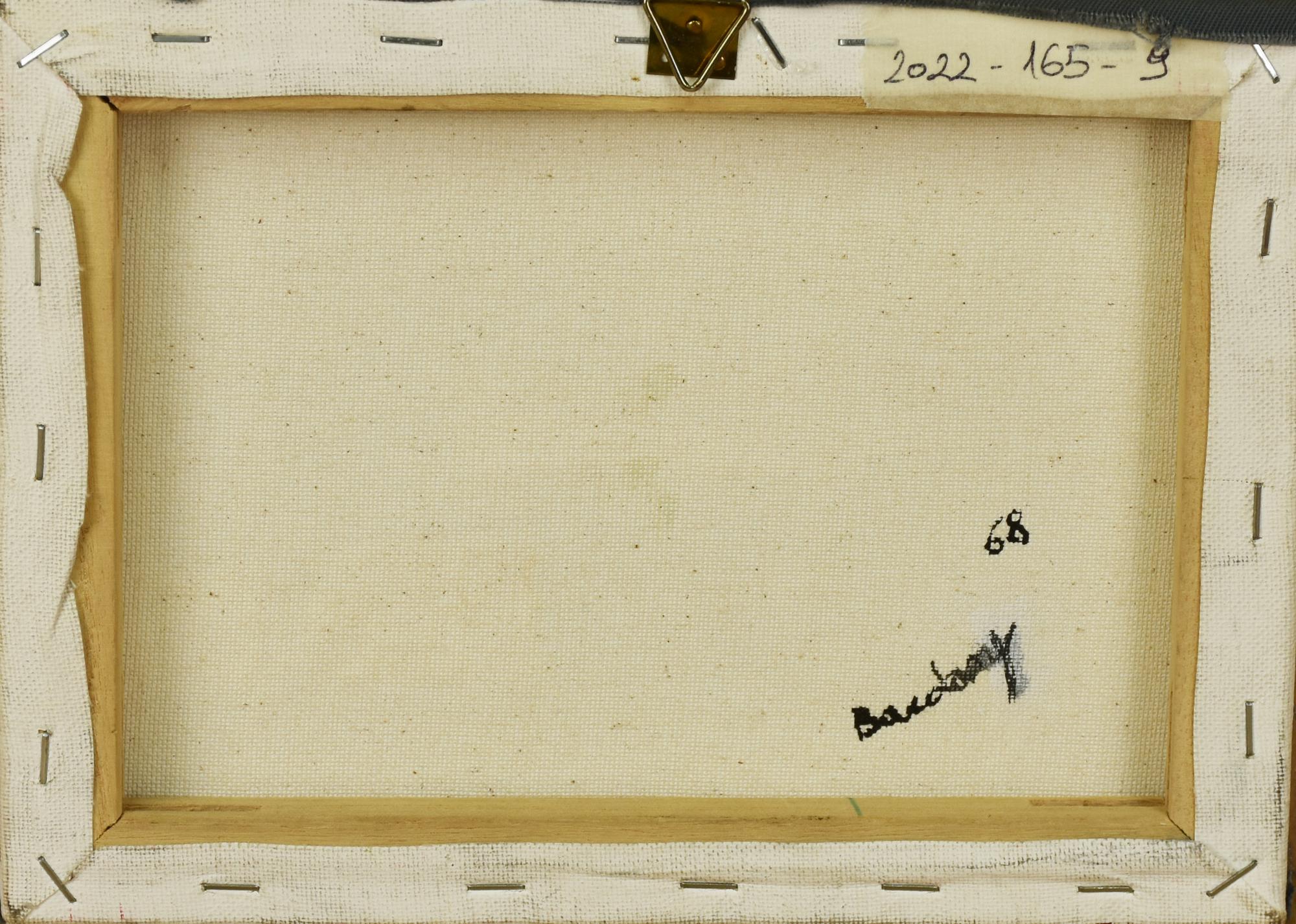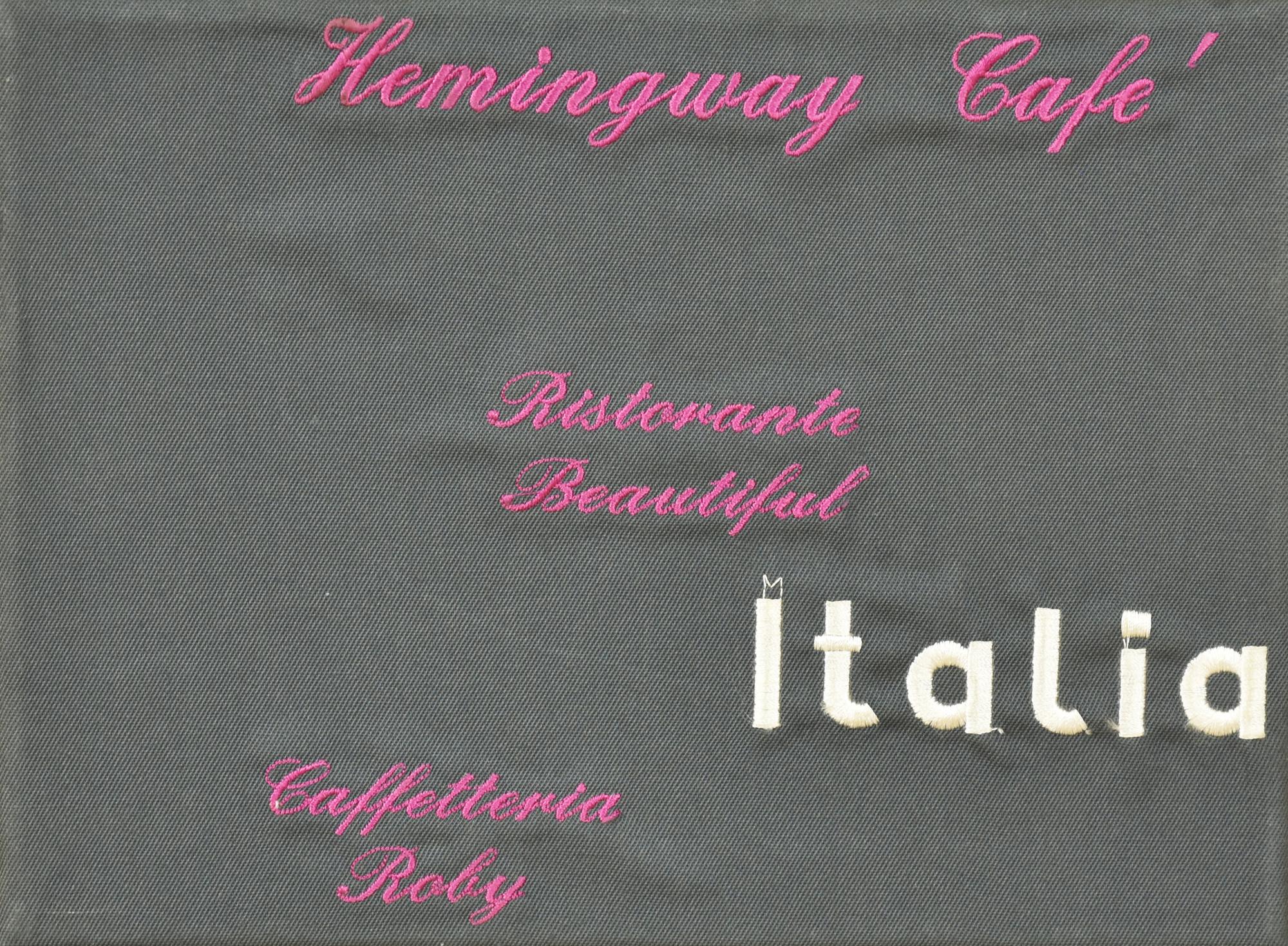 Ignoto ITALIA ricamo su cotone applicato a tela, cm 18x24 sul retro: firma e...