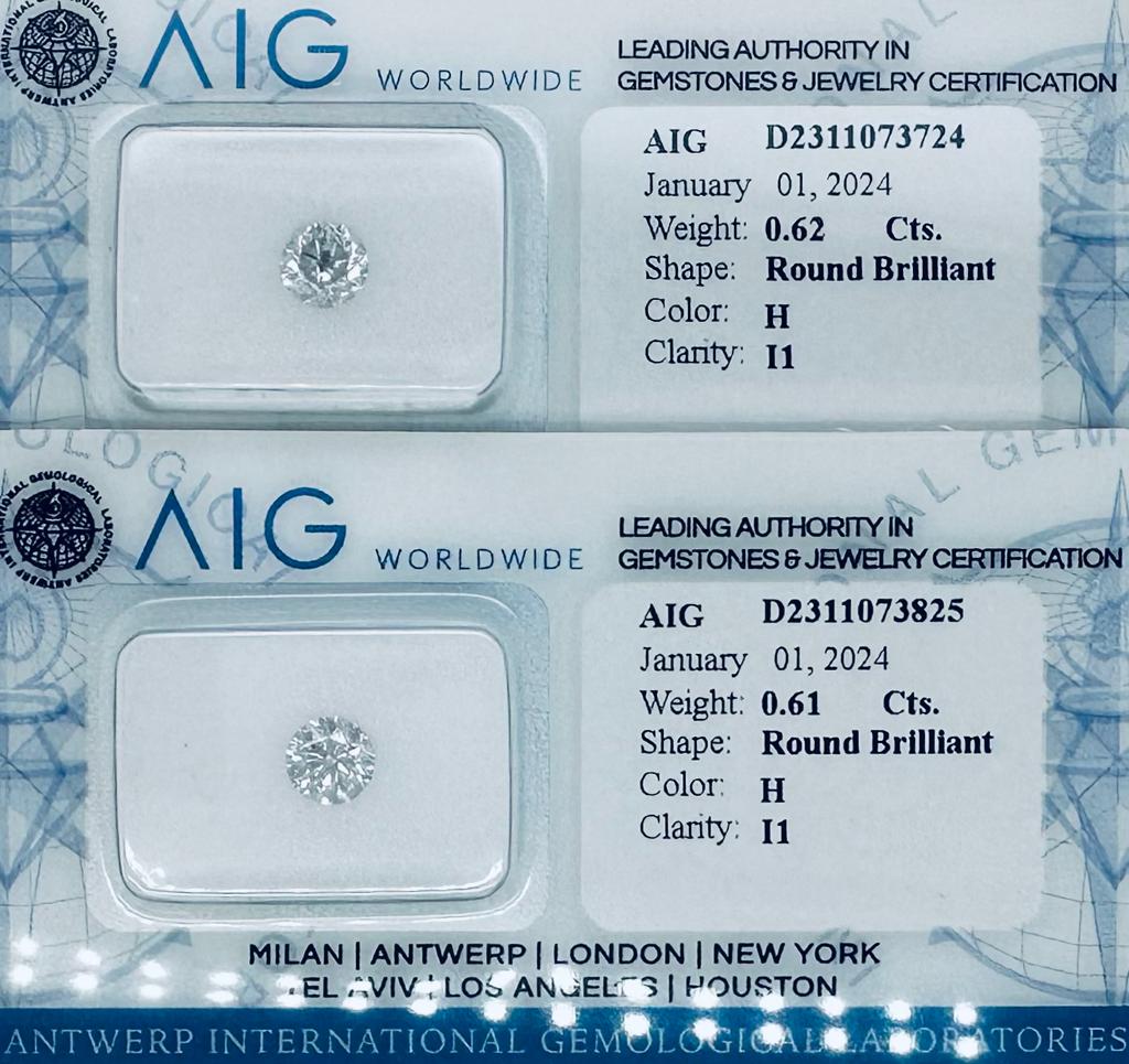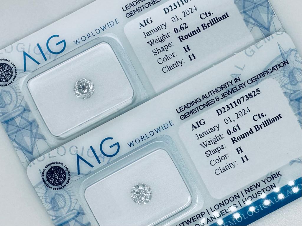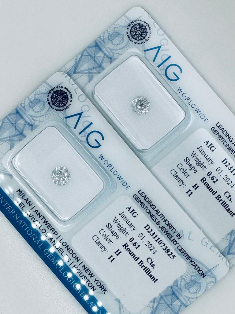 2 DIAMANTI 1,23 CARATI COLORE H - PUREZZA I1 - TAGLIO BRILLANTE - CERTIFICATO AIG - C31222-5+C31222-6
