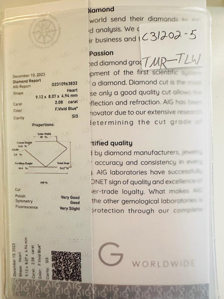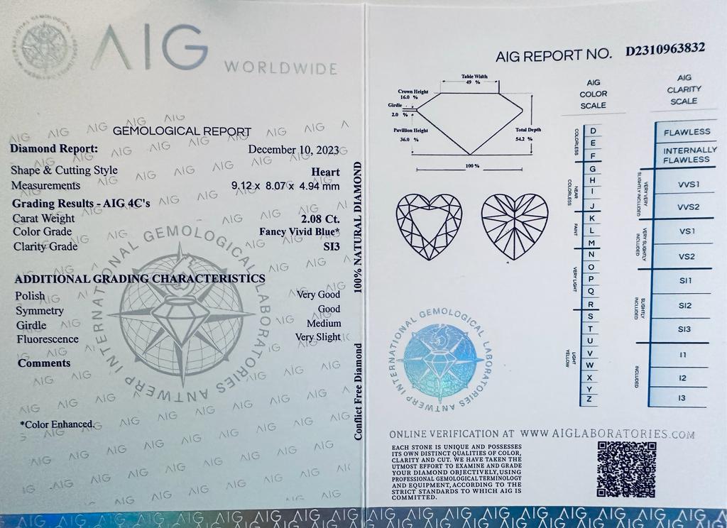 DIAMANTE COLORE ESALTATO 2,08 CARATI COLORE FANCY VIVID BLU* - PUREZZA SI3 - TAGLIO CUORE - CERTIFICATO AIG - C31202-5