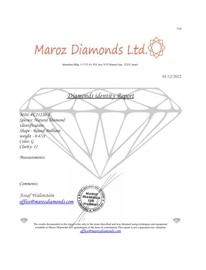 Lotto 105 | DIAMANTE 0,47 CARATI G - I2 - C21220-4
