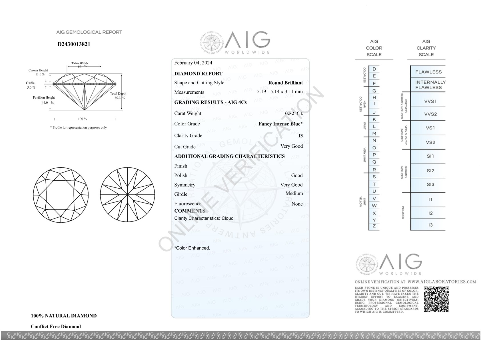 Lotto 162 | DIAMANTE 0,52 CT FANCY BLU INTENSO* - I3 - C31222-54-3