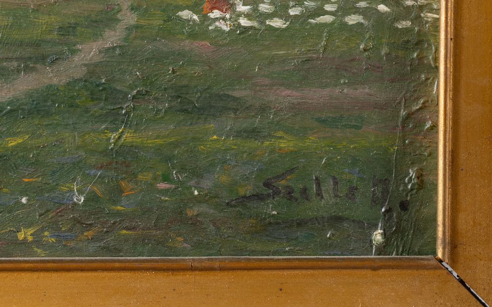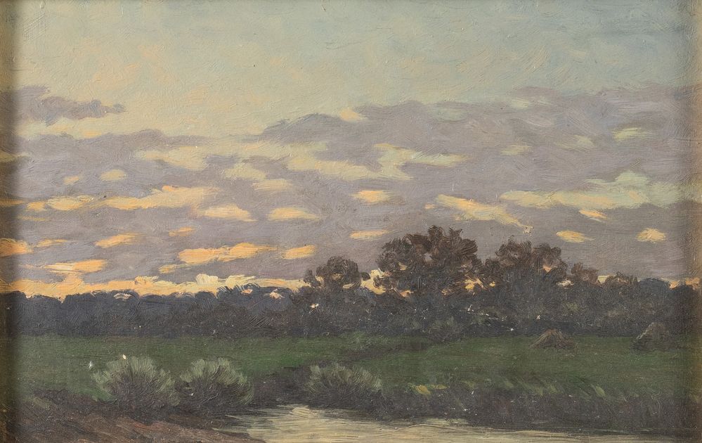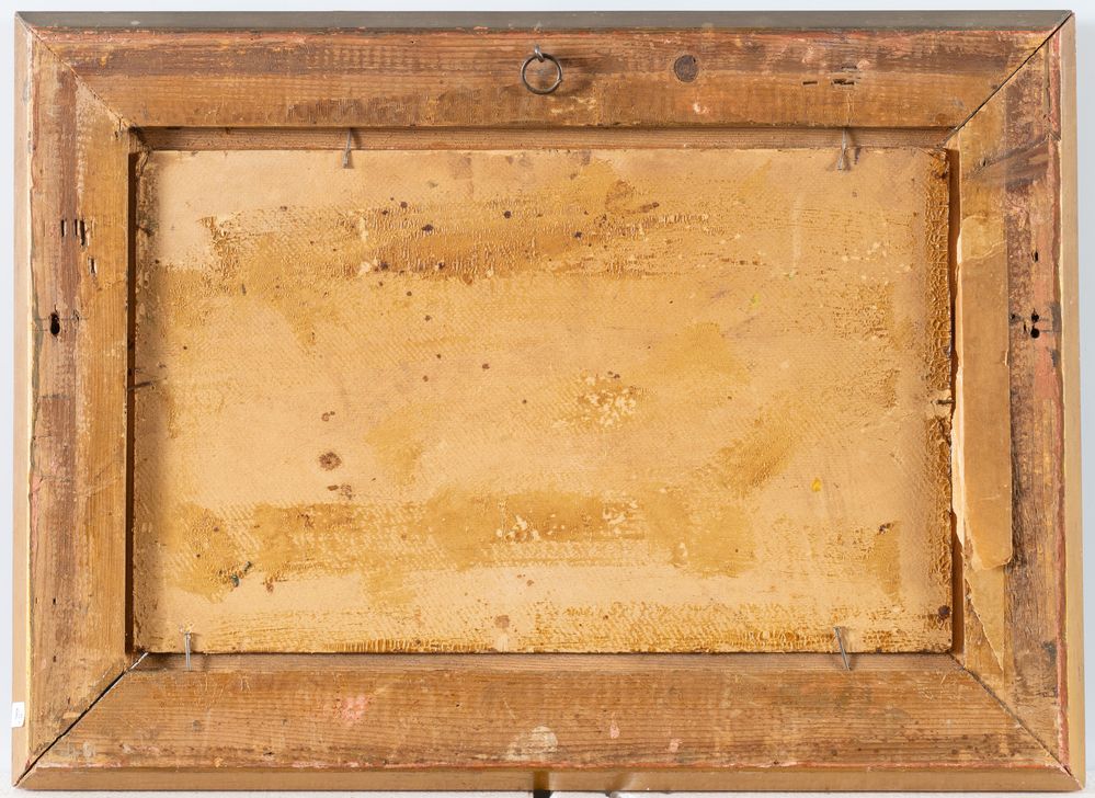 Pittore dell'inizio del XX secolo. Coppia di paesaggi. Olio su tavola. Rispettivamente di cm 22x34 e di cm 20,5x33,5. Un'opera è firmata in basso a destra.