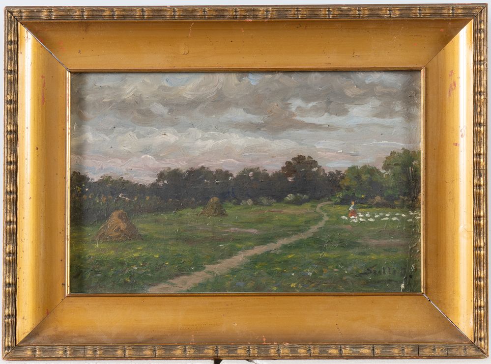 Pittore dell'inizio del XX secolo. Coppia di paesaggi. Olio su tavola....