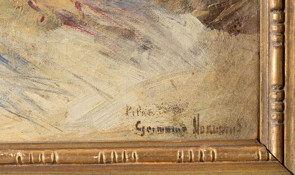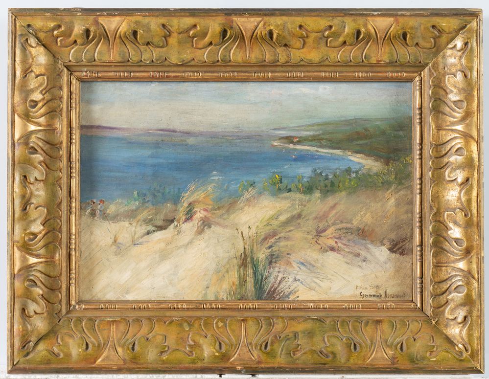 Pittore del XX secolo. "Spiaggia". Olio su tela. Cm 25x36,5. Opera...