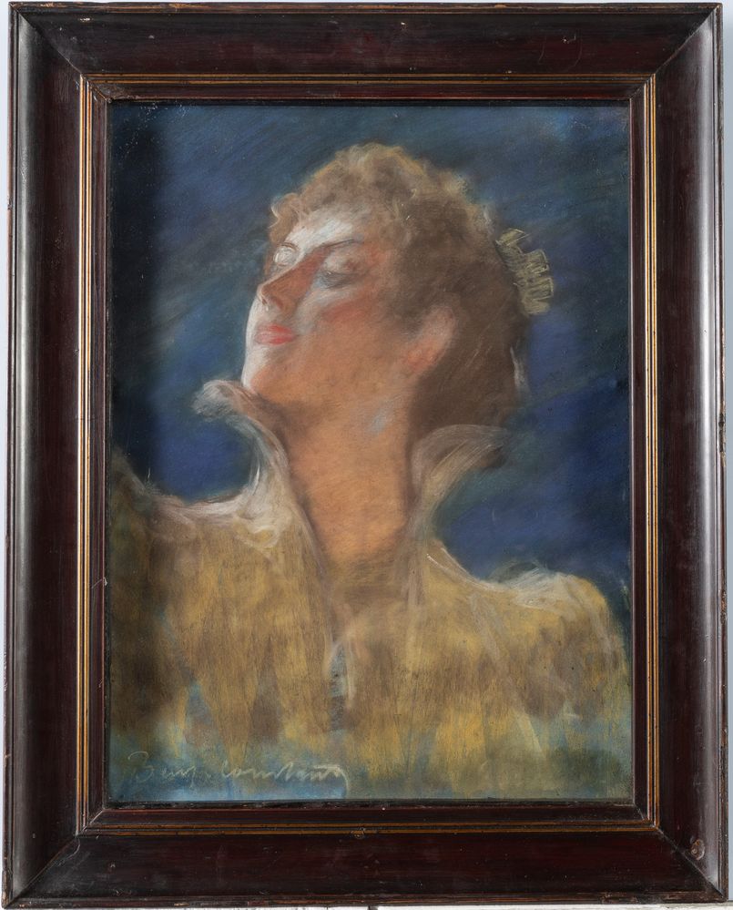 JEAN-JOSEPH BENJAMIN CONSTANT (Parigi, 1845 - 1902) attr. "Ritratto femminile". Tecnica mista su carta. Cm 59x44. Opera firmata in basso a sinistra Benj. Constant.