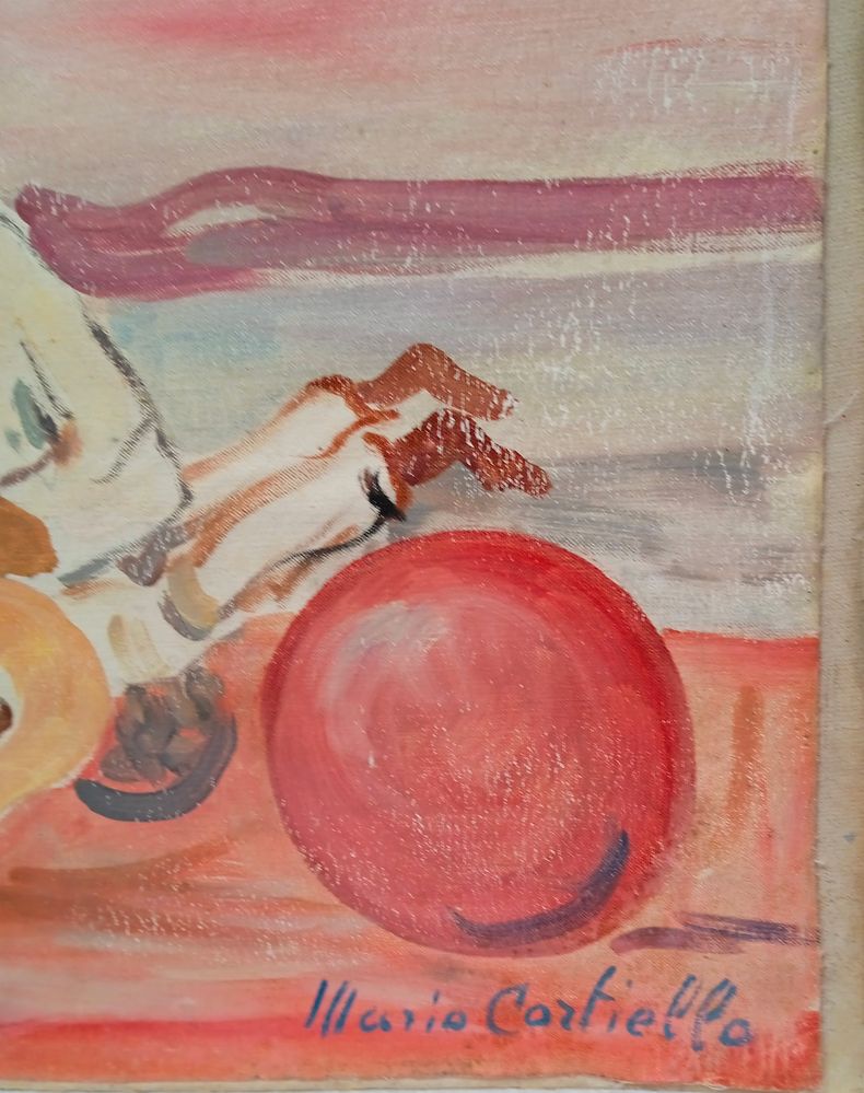 MARIO CORTIELLO (1907-1982) "Senza titolo". Olio su tela applicata su cartone. Cm 30x40. Opera firmata in basso a destra Mario Cortiello. Al retro reca timbri dell'artista.