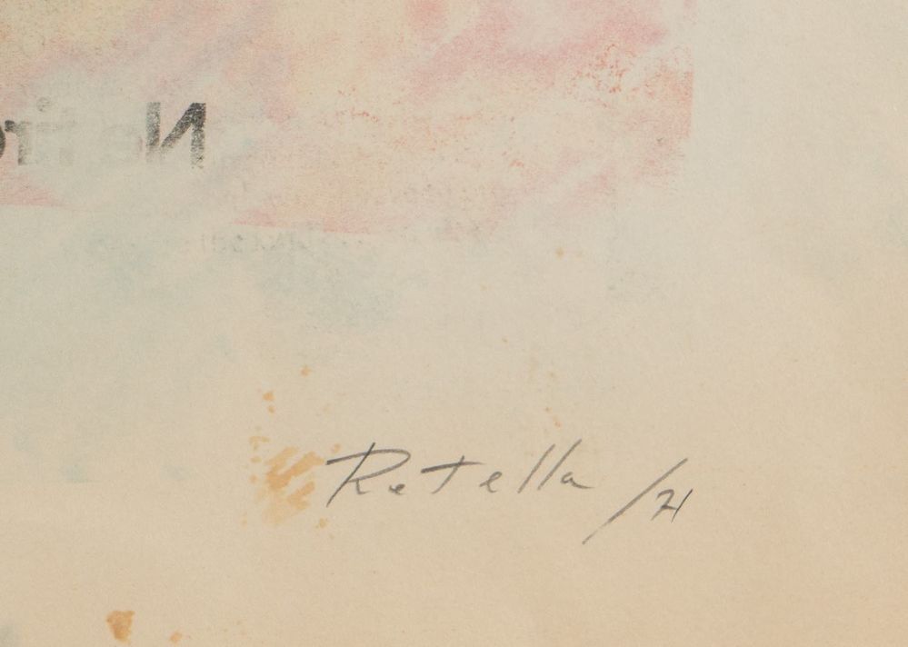 MIMMO ROTELLA (Catanzaro 1918 - Milano 2006) "Senza titolo", 1971. Effaçage. Cm 35x26,5. Opera firmata e datata in basso a destra Rotella '71.