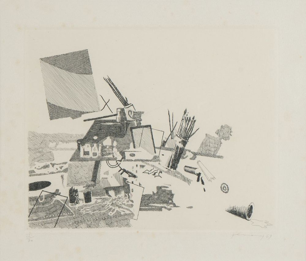 GIANFRANCO FERRONI (Livorno 1927 - Bergamo 2001) "Senza titolo", 1969. Incisione su carta. Lastra: cm 23,5x29; foglio: cm 30,5x36. Opera firmata e datata in basso a destra Ferroni '69. Reca numeri di tiratura in basso a sinistra 22/70.
