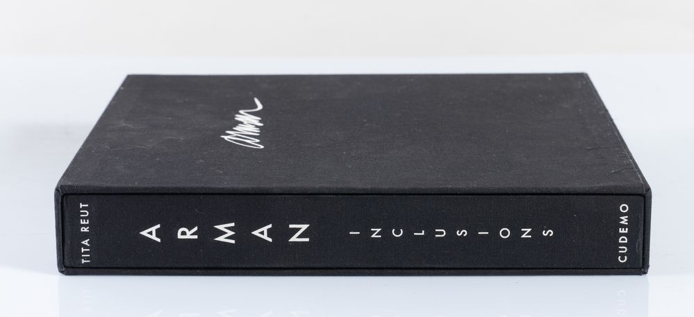 FERNANDEZ ARMAN (Nizza 1928 - New York 2005) "Accumulazione di tubetti". Tubetti e libro. Cm 38x36,5x17. Reca firma e numeri di tiratura in basso a destra Arman 80/80.