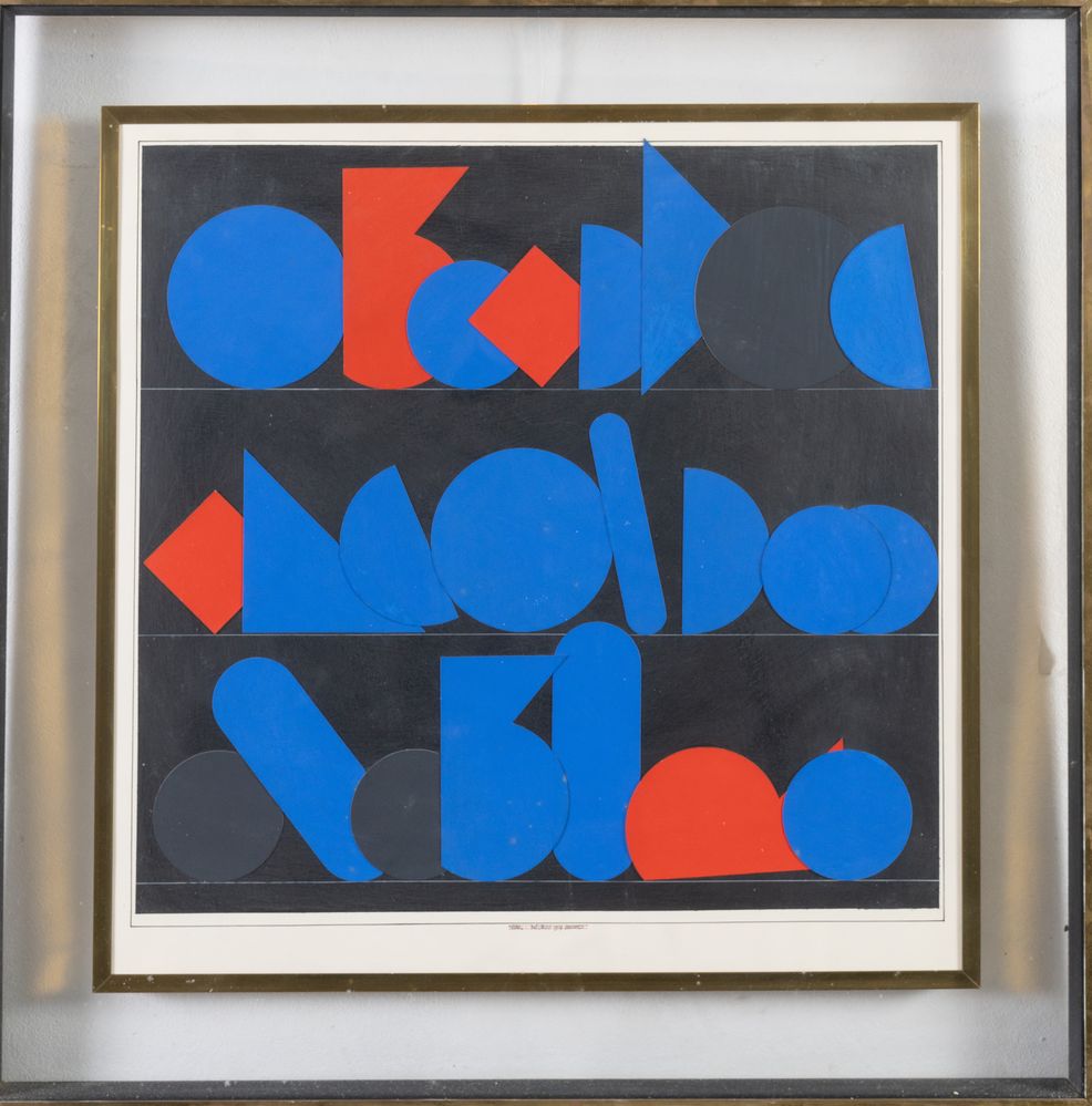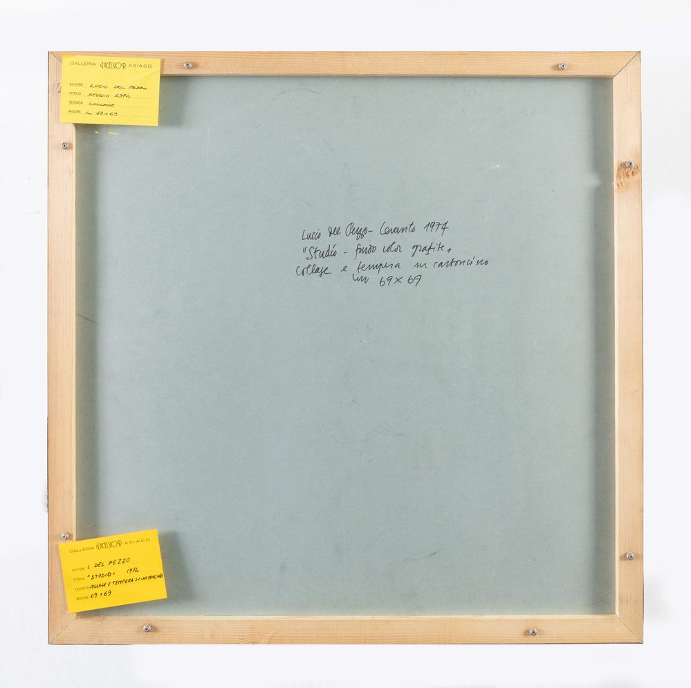 LUCIO DEL PEZZO (Napoli 1933 - Milano 2020) "Studio", 1974. Collage e tempera su cartoncino. Cm 69x69. Opera intitolata, firmata e datata in basso al centro, studio del pezzo 1914 levanto.