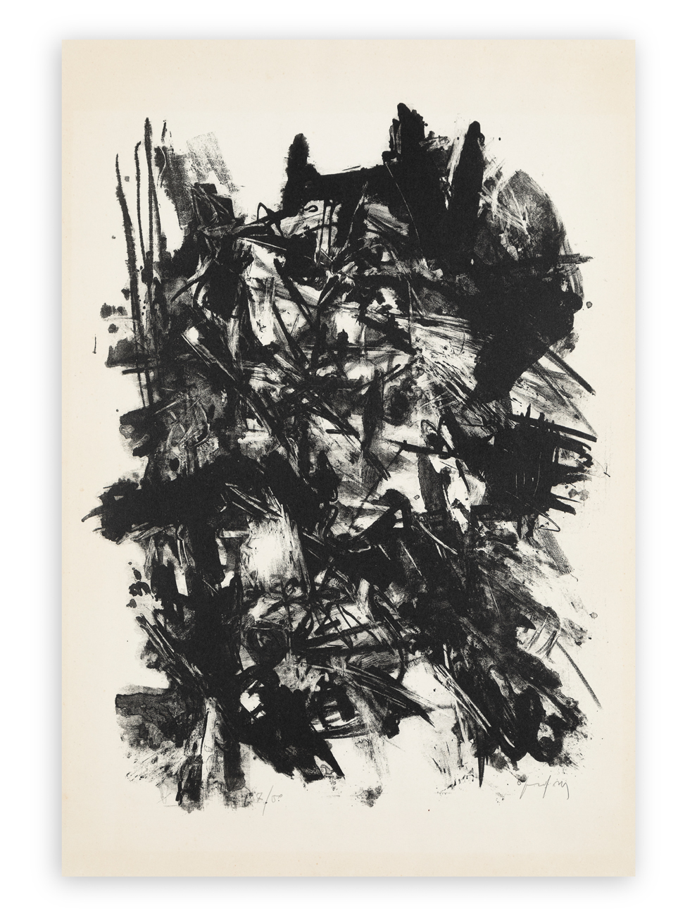 Opera originariamente parte della cartella 'Emilio Vedova. Presenze 1960' contenente testi di presentazione di G. C. Argan e J. Leymarie e 6 litografie originali di Emilio Vedova