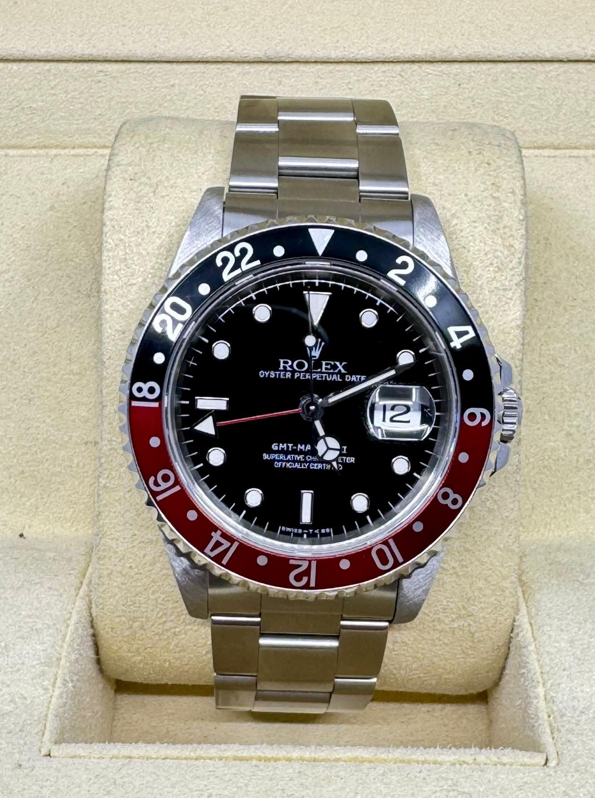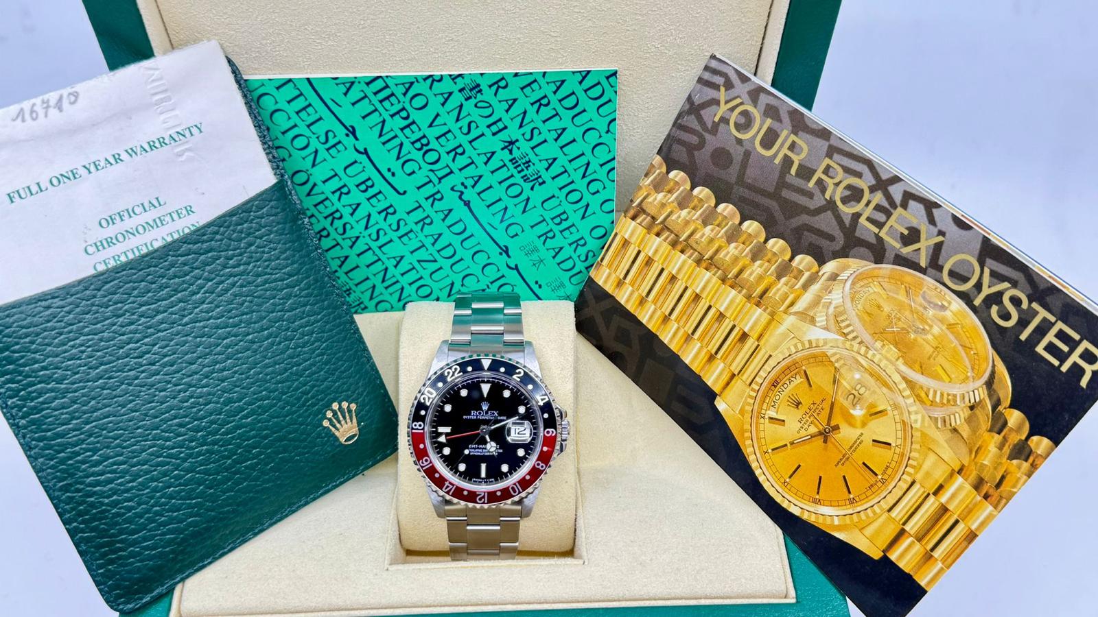 Marca Rolex Modello (Orologio) GMT-Master II Numero di referenza 16710 Carica Automatico Materiale della cassa Acciaio Materiale cinturino Acciaio Anni 90 Condizione Ottimo (di seconda mano, segni di usura assenti o appena visibili) Corredo Con documenti originali, senza scatola originale Calibro Carica Automatico Cassa Materiale della cassa Acciaio Diametro 40 mm Impermeabile 10 ATM Vetro Vetro zaffiro Quadrante Nero Numeri sul quadrante Senza numeri Cinturino Materiale cinturino Acciaio Colore cinturino Acciaio Chiusura Déployante Materiale chiusura Acciaio