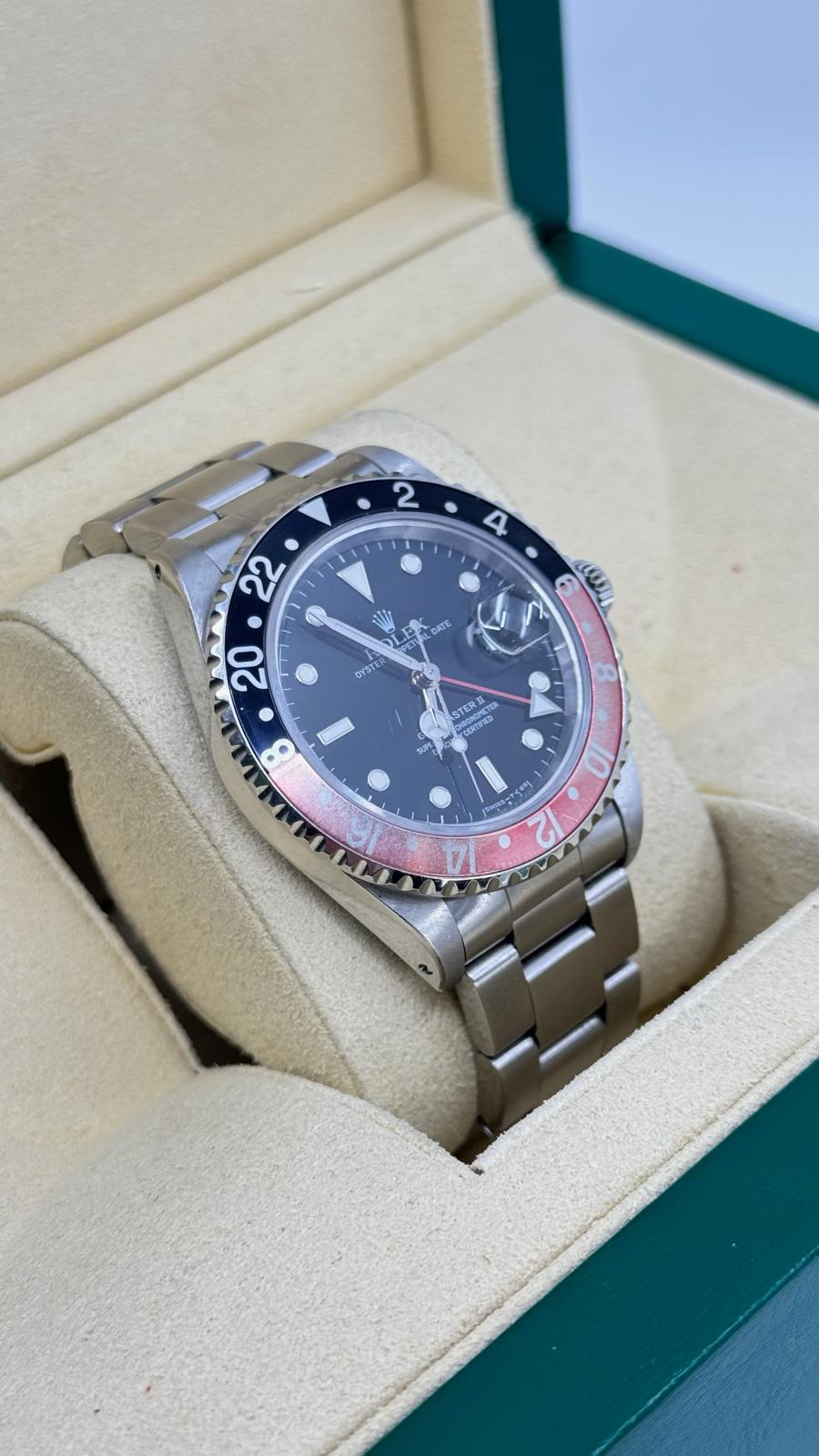 Marca Rolex Modello (Orologio) GMT-Master II Numero di referenza 16710 Carica Automatico Materiale della cassa Acciaio Materiale cinturino Acciaio Anni 90 Condizione Ottimo (di seconda mano, segni di usura assenti o appena visibili) Corredo Con documenti originali, senza scatola originale Calibro Carica Automatico Cassa Materiale della cassa Acciaio Diametro 40 mm Impermeabile 10 ATM Vetro Vetro zaffiro Quadrante Nero Numeri sul quadrante Senza numeri Cinturino Materiale cinturino Acciaio Colore cinturino Acciaio Chiusura Déployante Materiale chiusura Acciaio