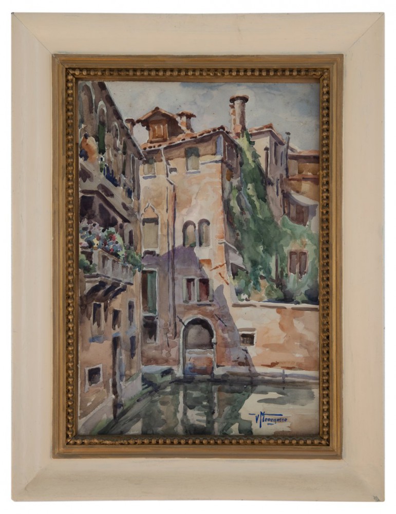 Vasco Menegozzo Venezia 1886 - Biella 1974 Angolo di Venezia Acquarello su carta 47,5x32,5 firmato in basso a dx
