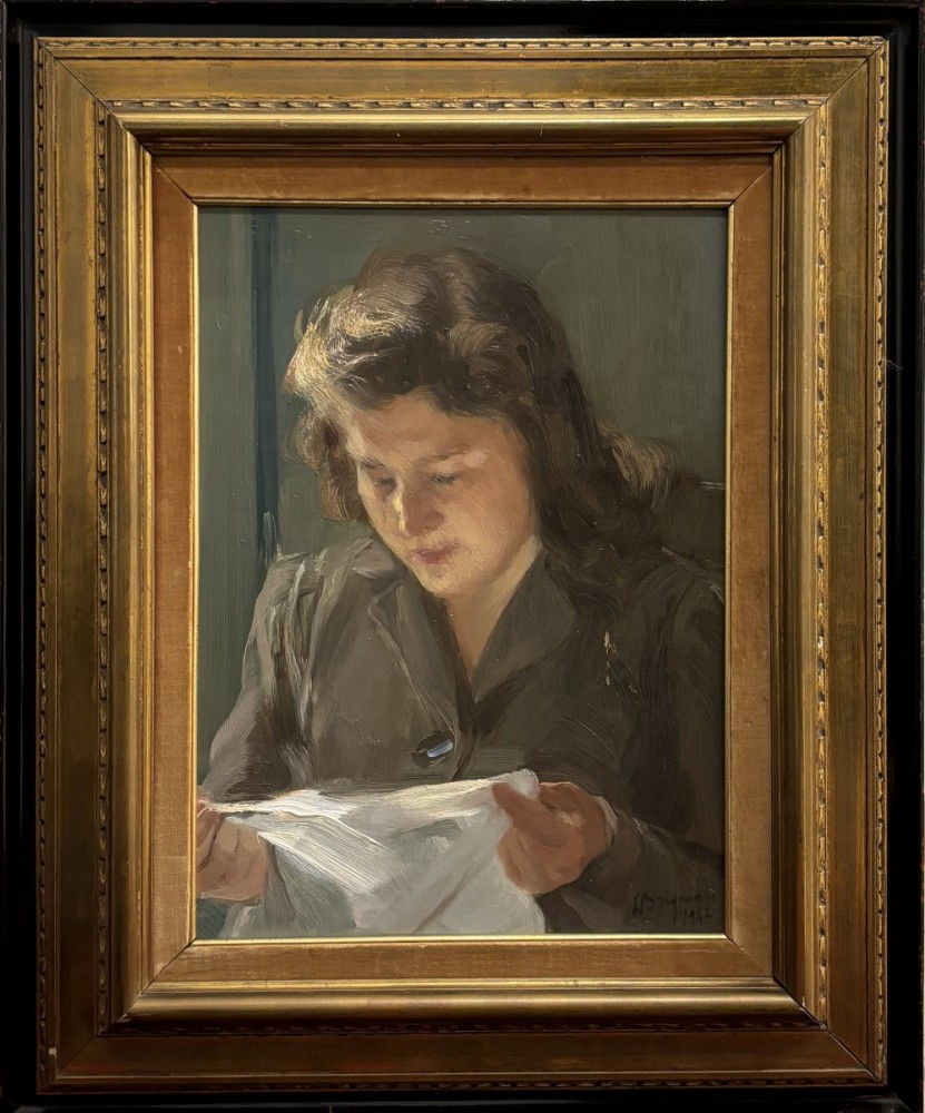 Luigi Brignoli Palosco (BG) 1881 - Bergamo 1952 Ritratto femminile Olio su tavola cm 50x38 firmato in basso a dx datato 1942