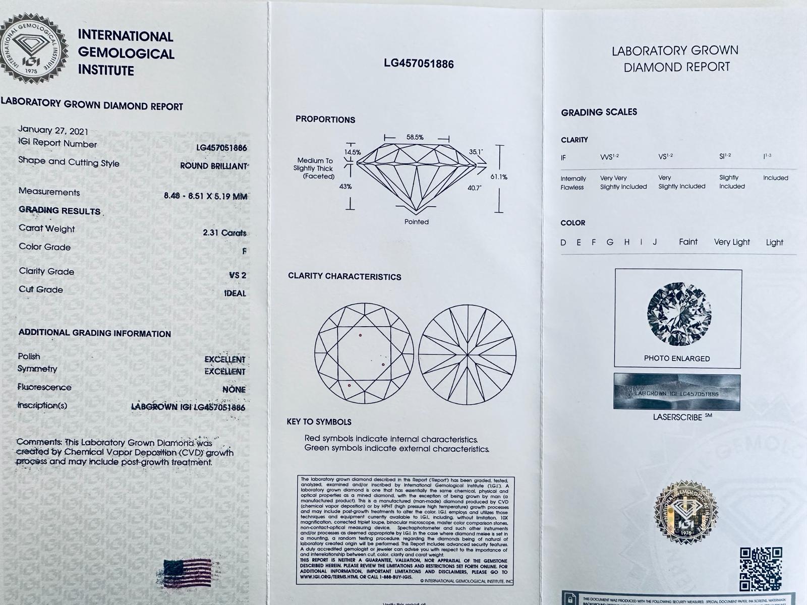 DIAMANTE 2,31 CT F - VS2 - LAB GROWN - IGI - LG40208