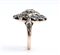 montatura ovale a motivo floreale impreziosita da diamanti taglio a rosa e zaffiri.
