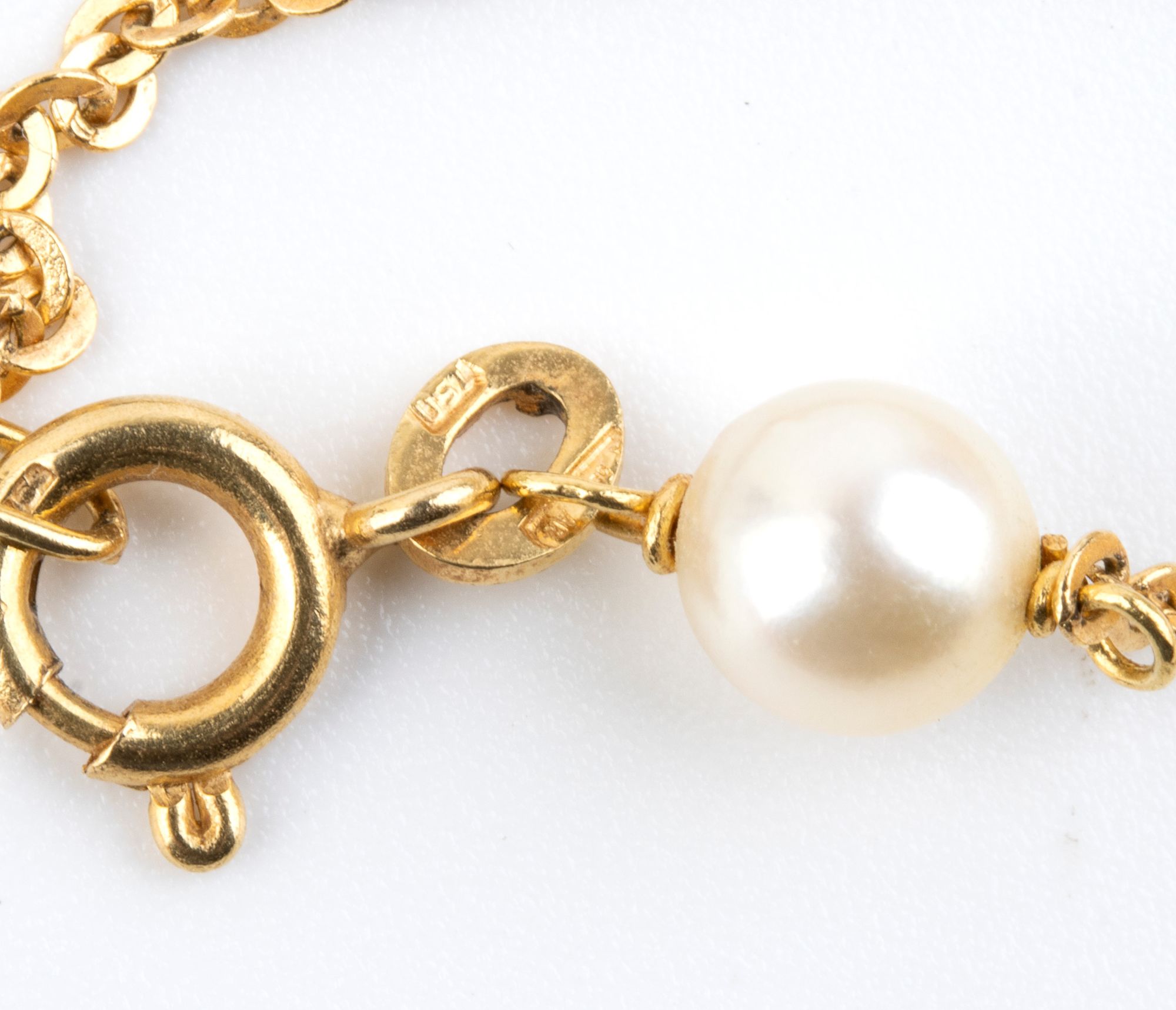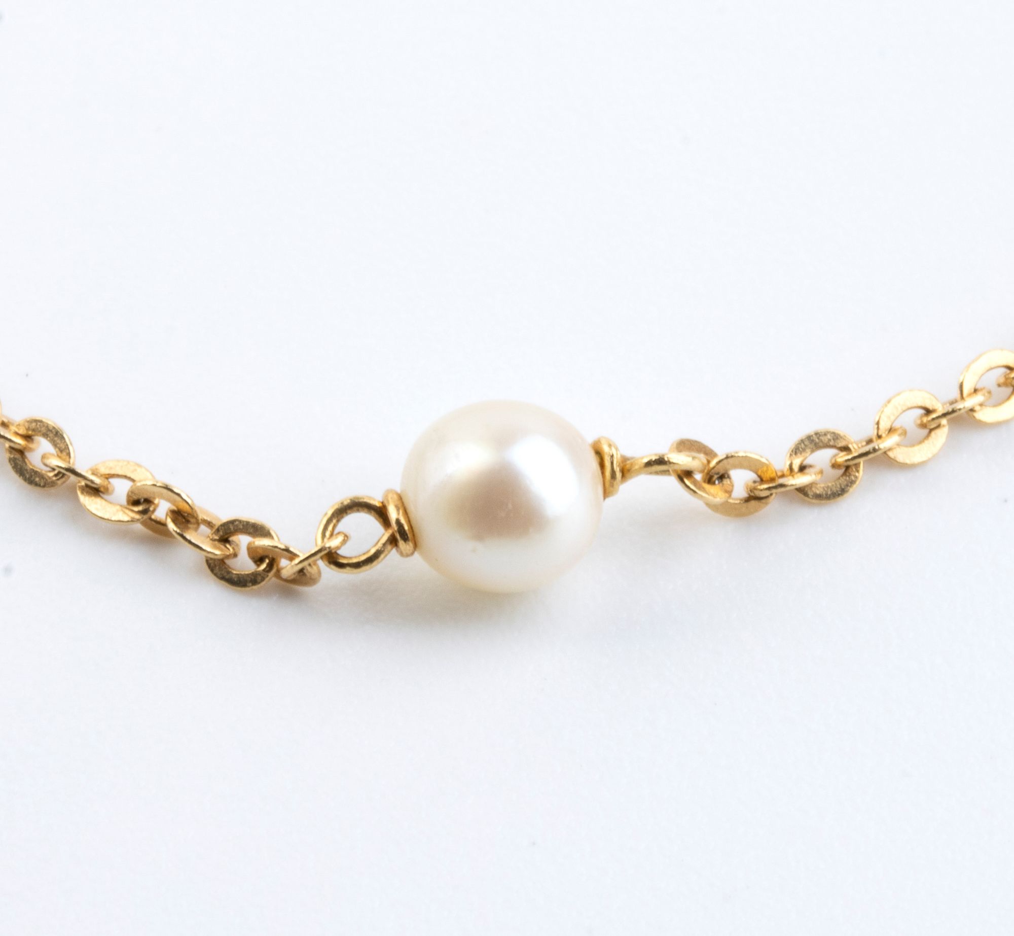 catena a maglia forzatina in oro giallo 18k , interrotta da perle coltivate d'acqua salata.