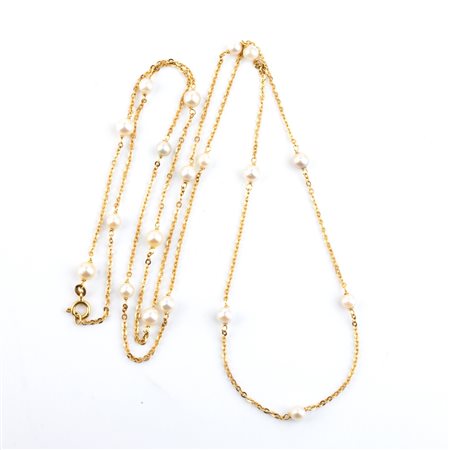 Diametro perle 6 - 6.5 mm. Punzonato "750 - 59 AR". Lunghezza 98 cm. Peso 13,5 gr.