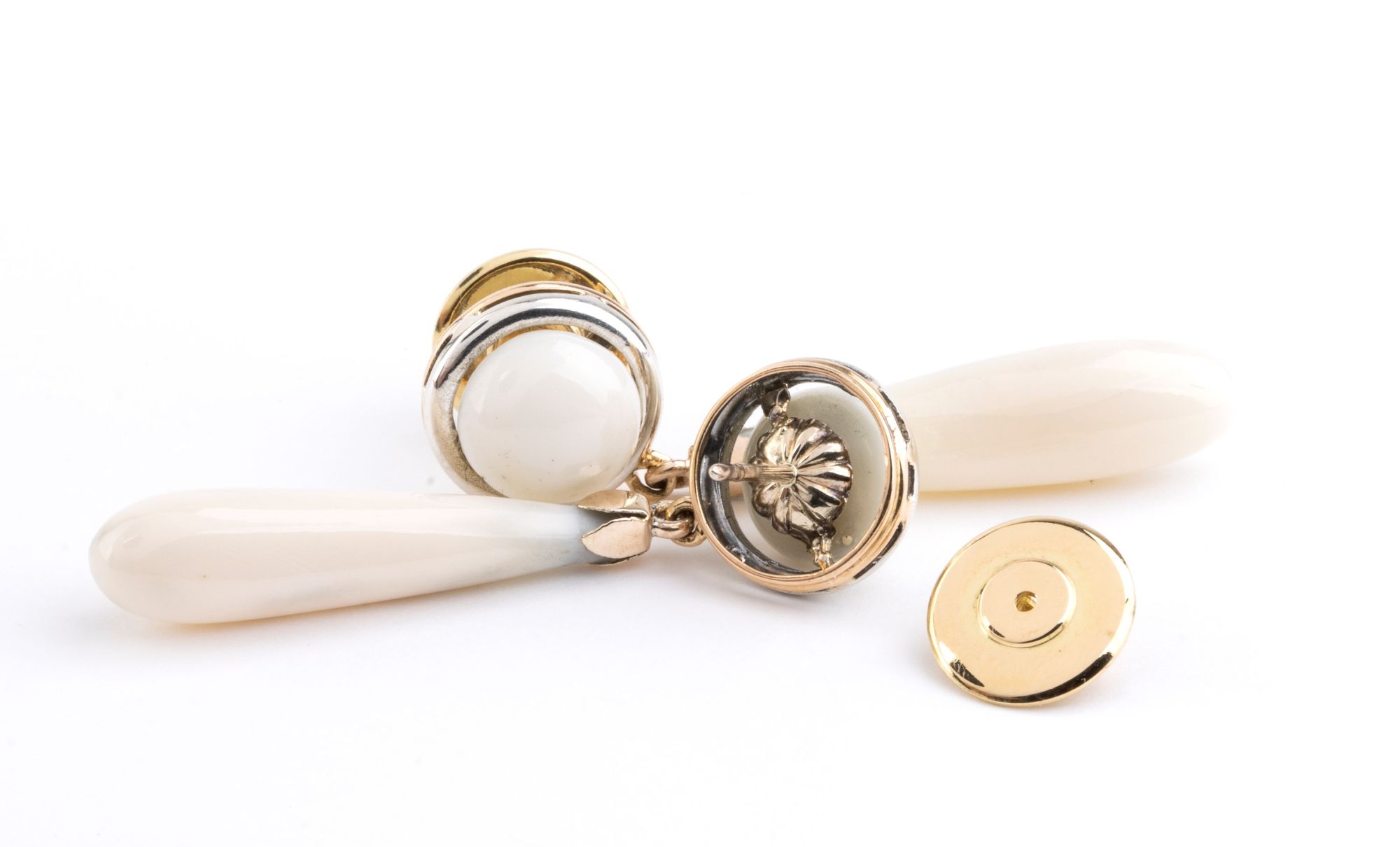 Punzonati "750". Lunghezza 4,5 cm. Peso complessivo 9,7 gr.