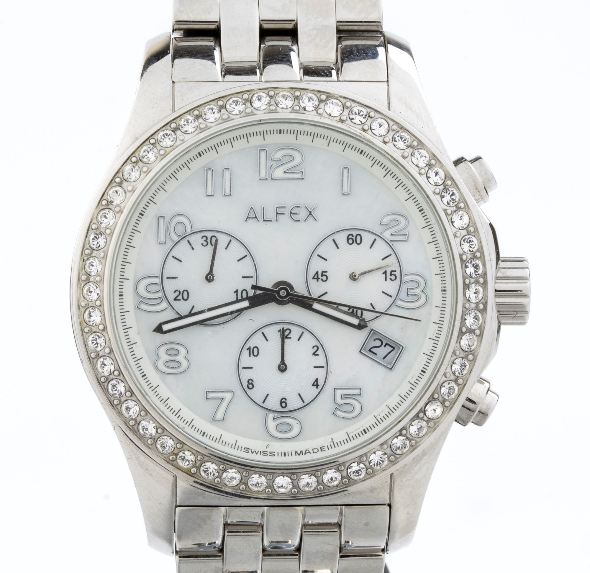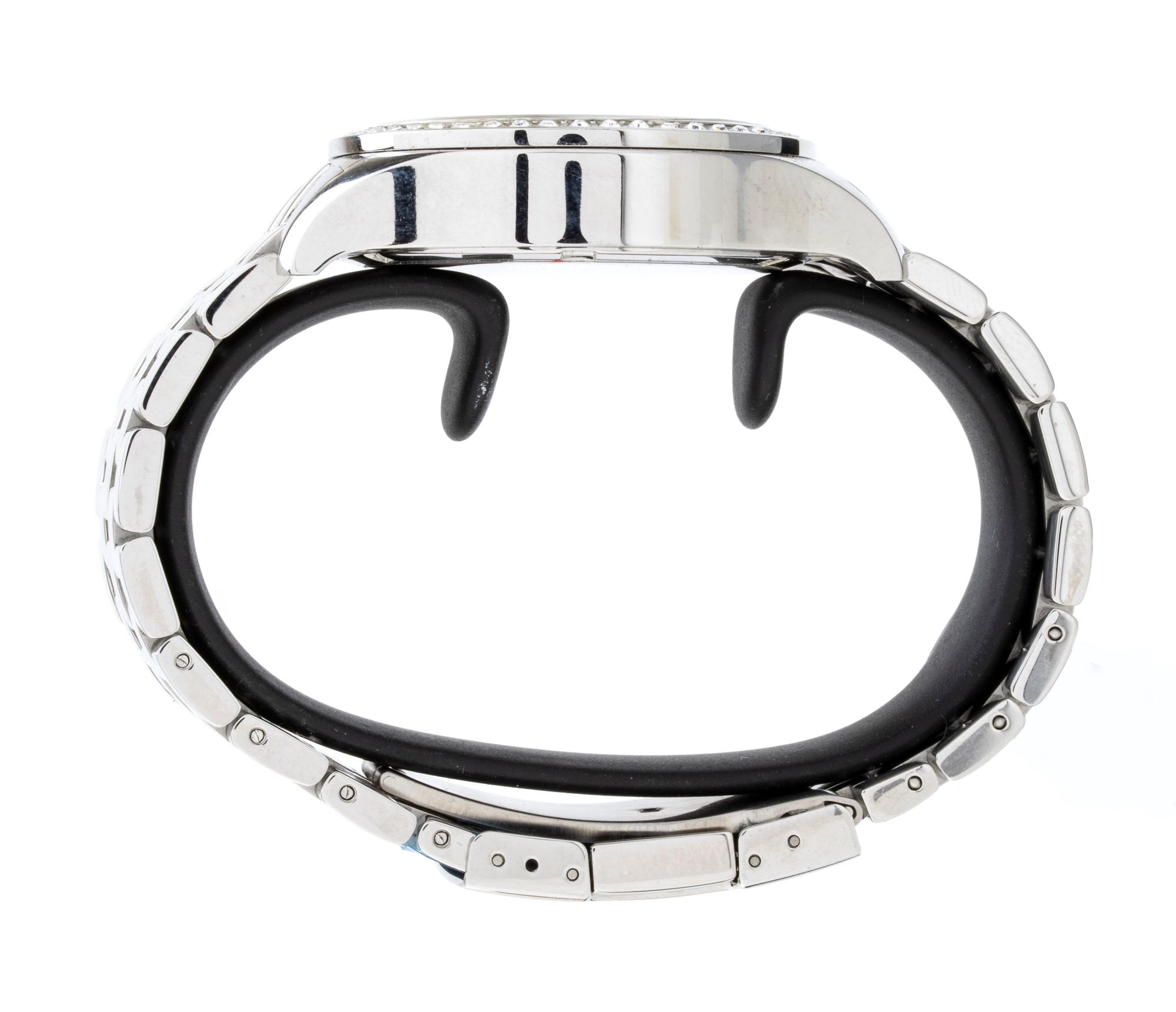 cassa e bracciale in acciaio, lunetta con pietre incolori.