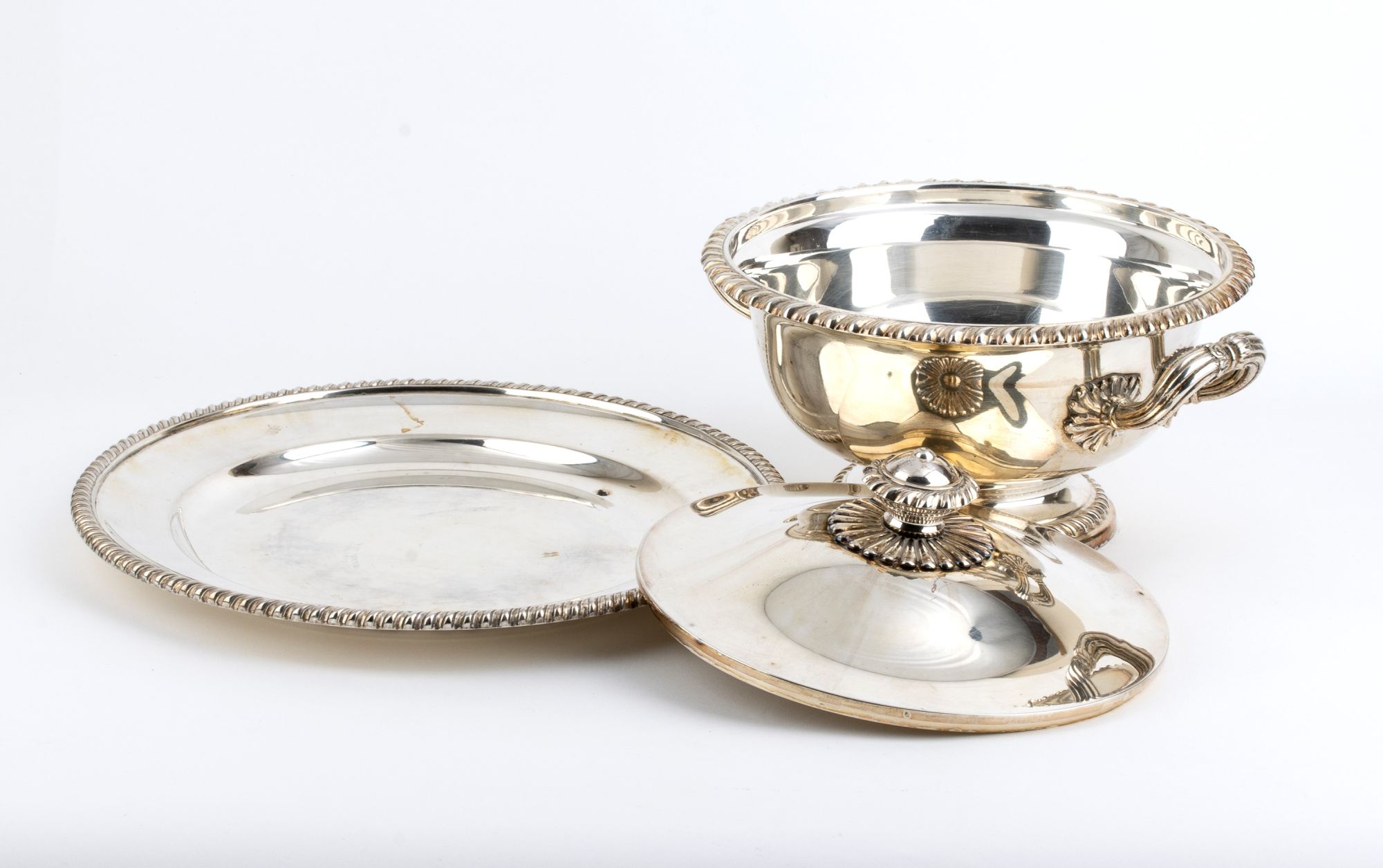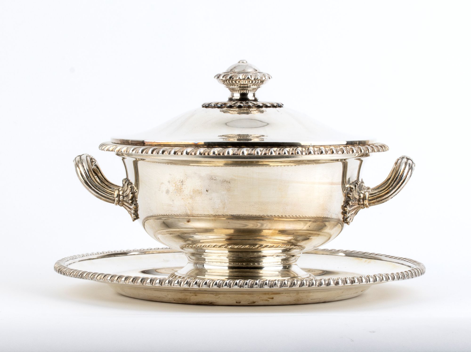 Zuppiera in argento con sottopiatto - Italia anni '30, argentiere Miracoli Milano