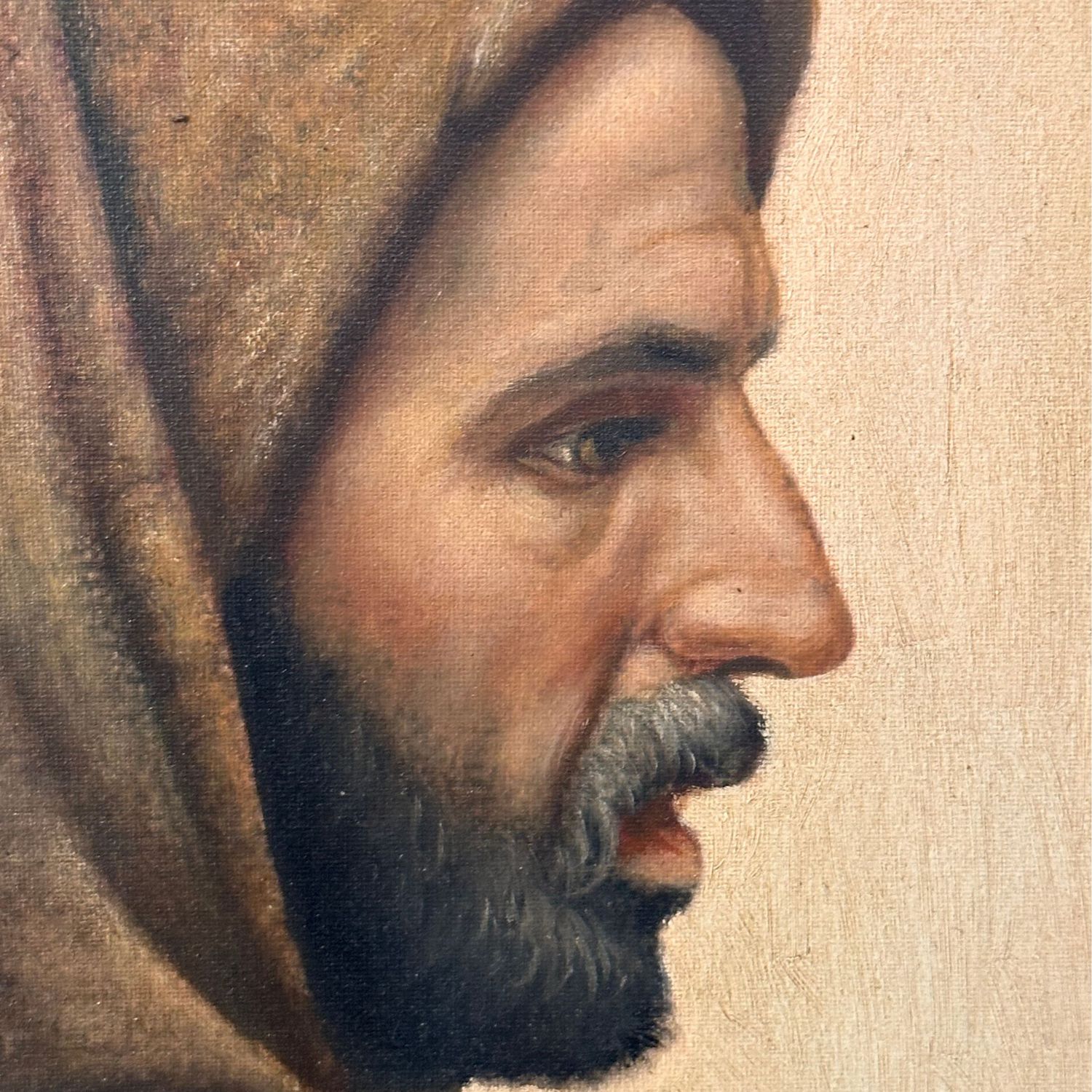 Dipinto olio su cartoncino tratto da un opera di Jose tapiro’ ritratto di un uomo con mantello, Scuola italiana da artista anonimo del XX secolo.