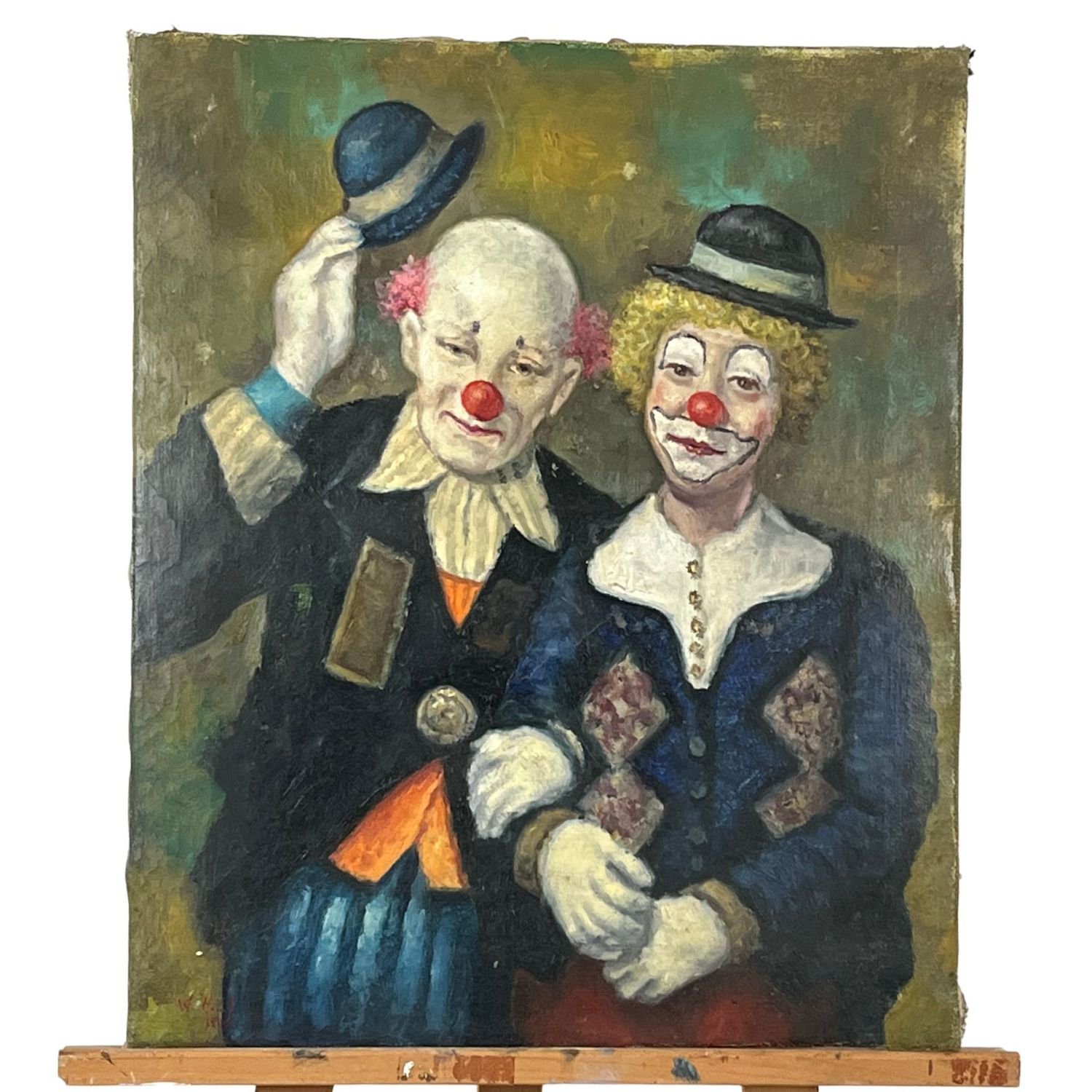 Dipinto olio su tela, raffigurante Clown, scuola Italiana XX secolo. Artista non identificato.
