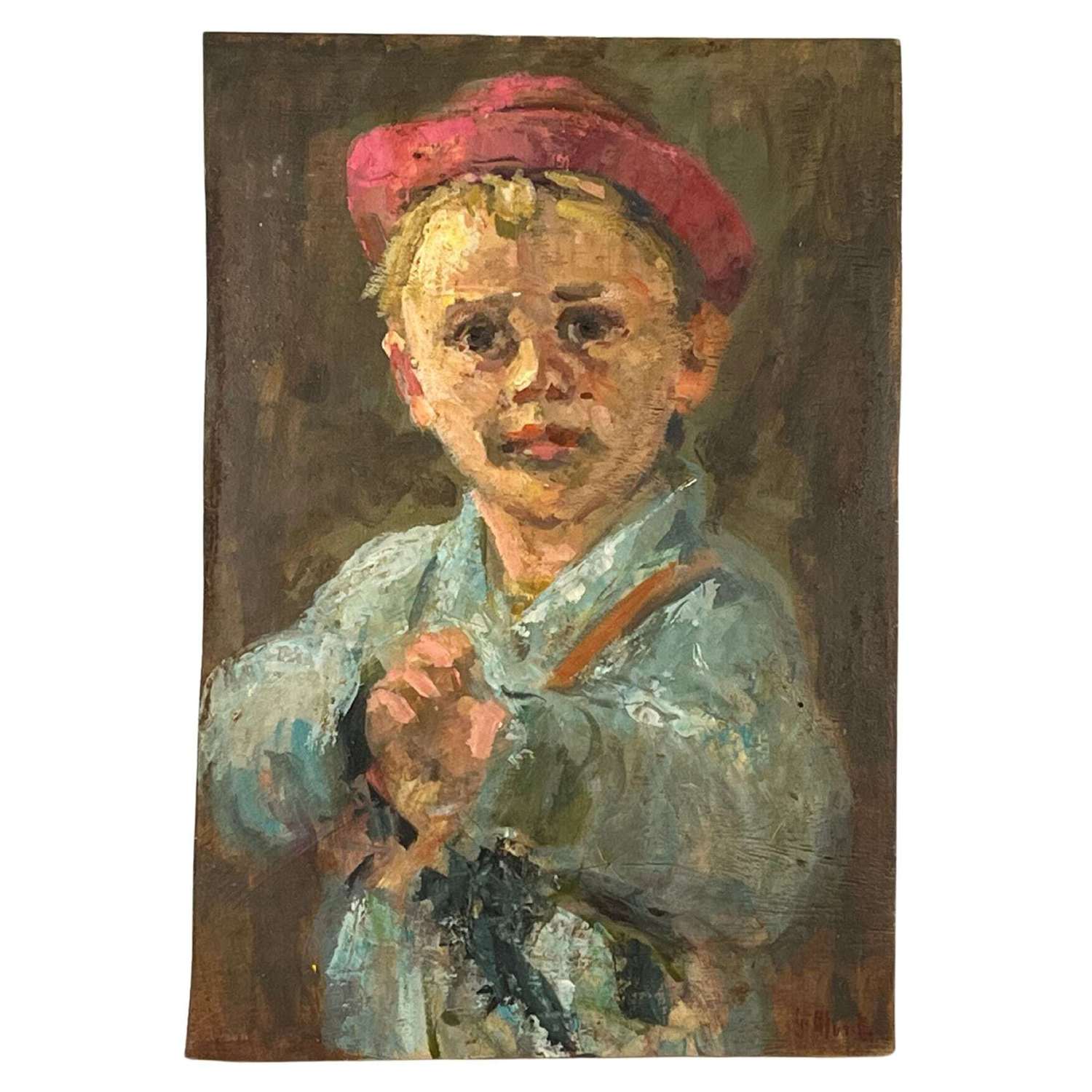 Dipinto olio su tavola, raffigurante Ritratto di Bambino. XX secolo.