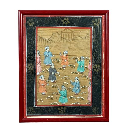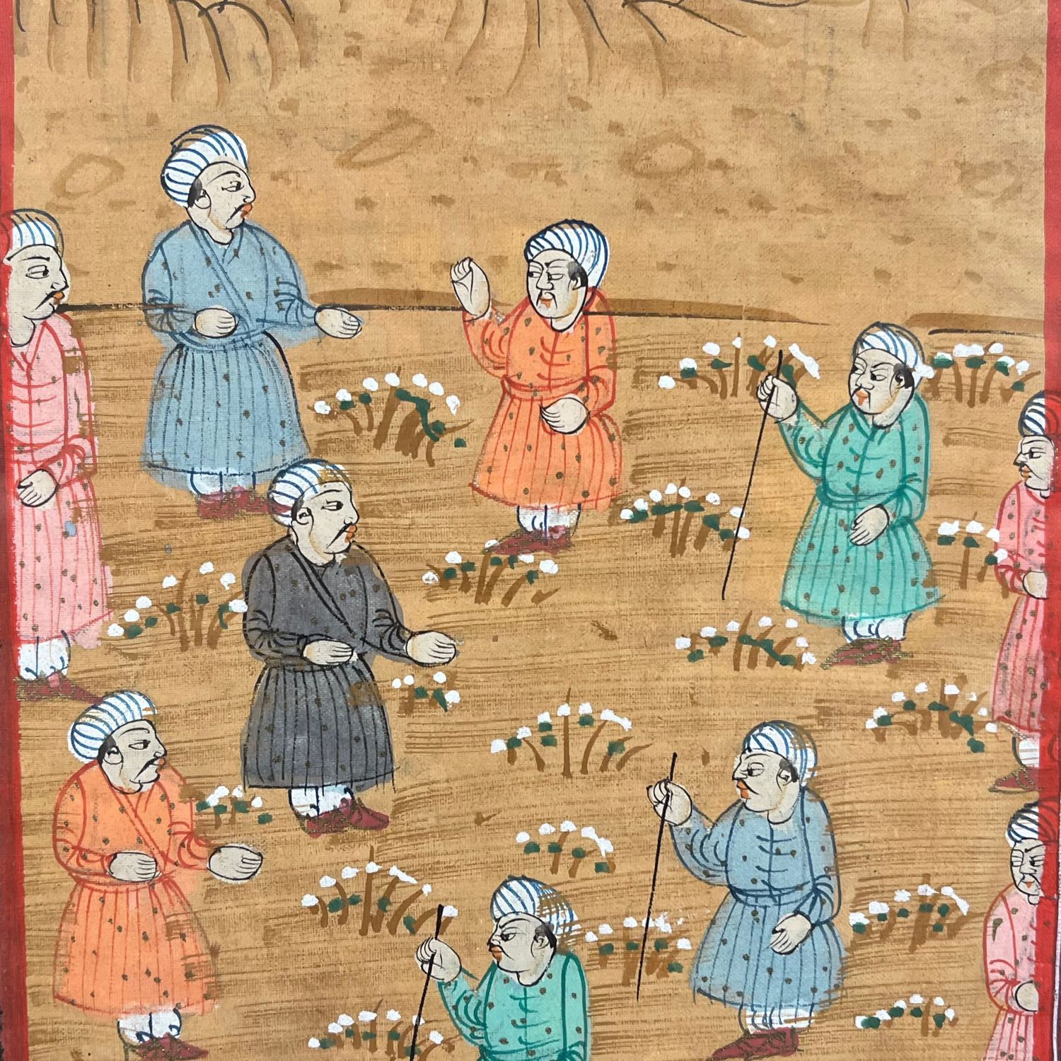 Dipinto su tessuto di area Orientale, periodo XX secolo raffigurante campo di coltivazione.