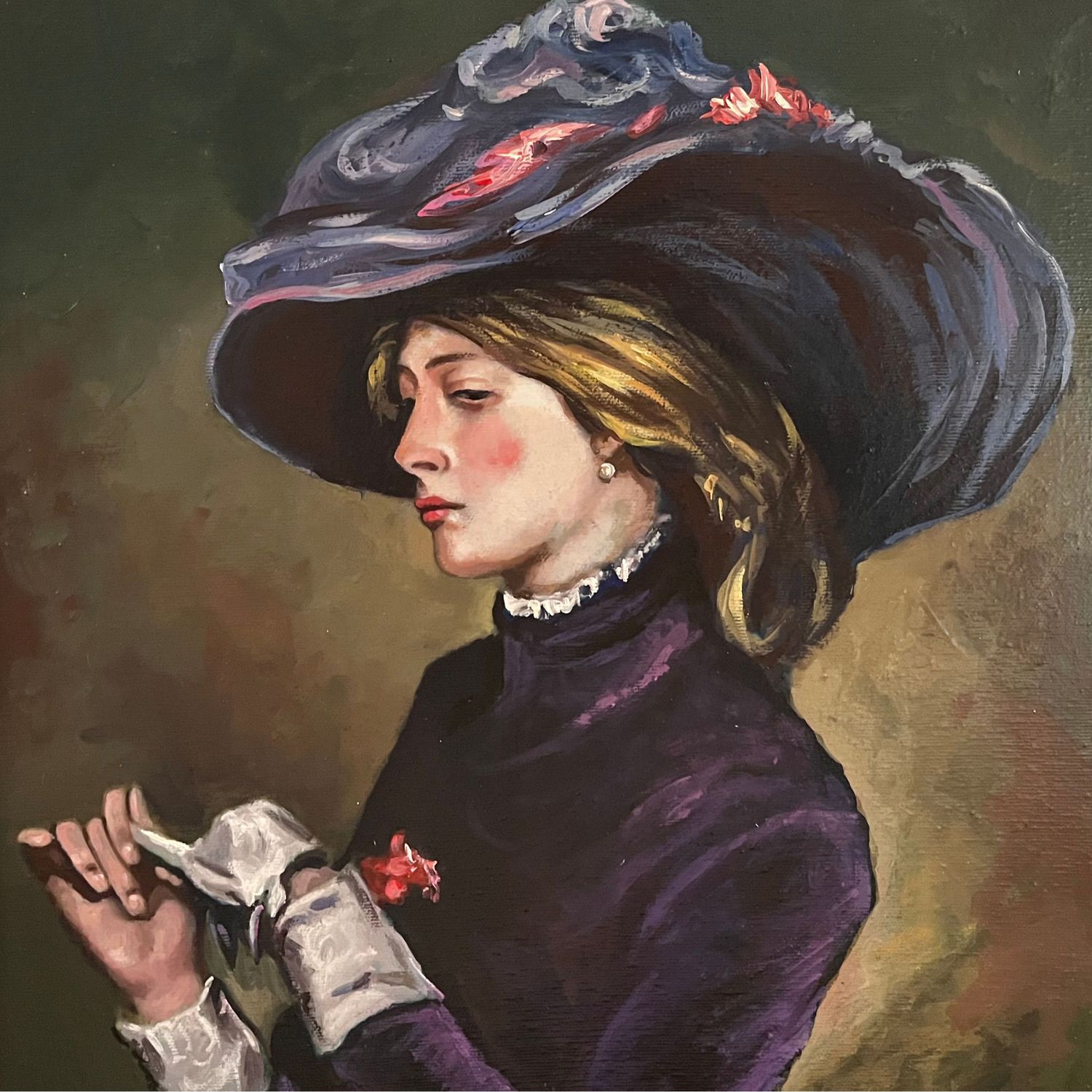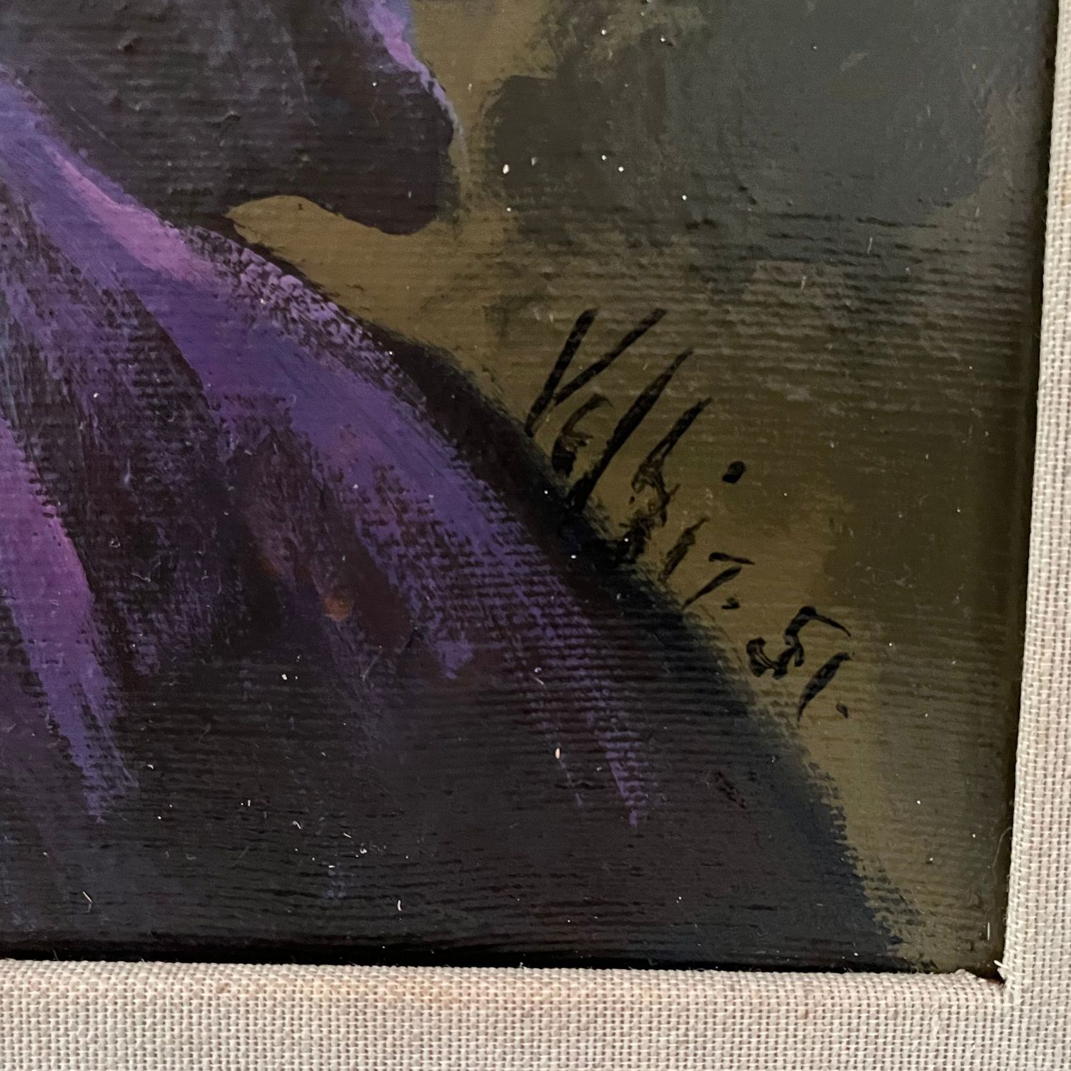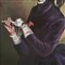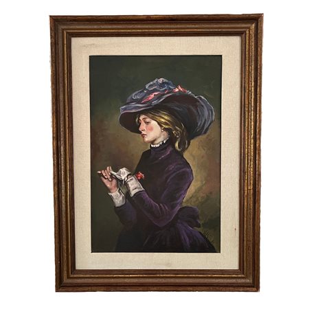 Dipinto olio su tela, periodo 1951 scuola Europea, raffigurante Elegante donna.