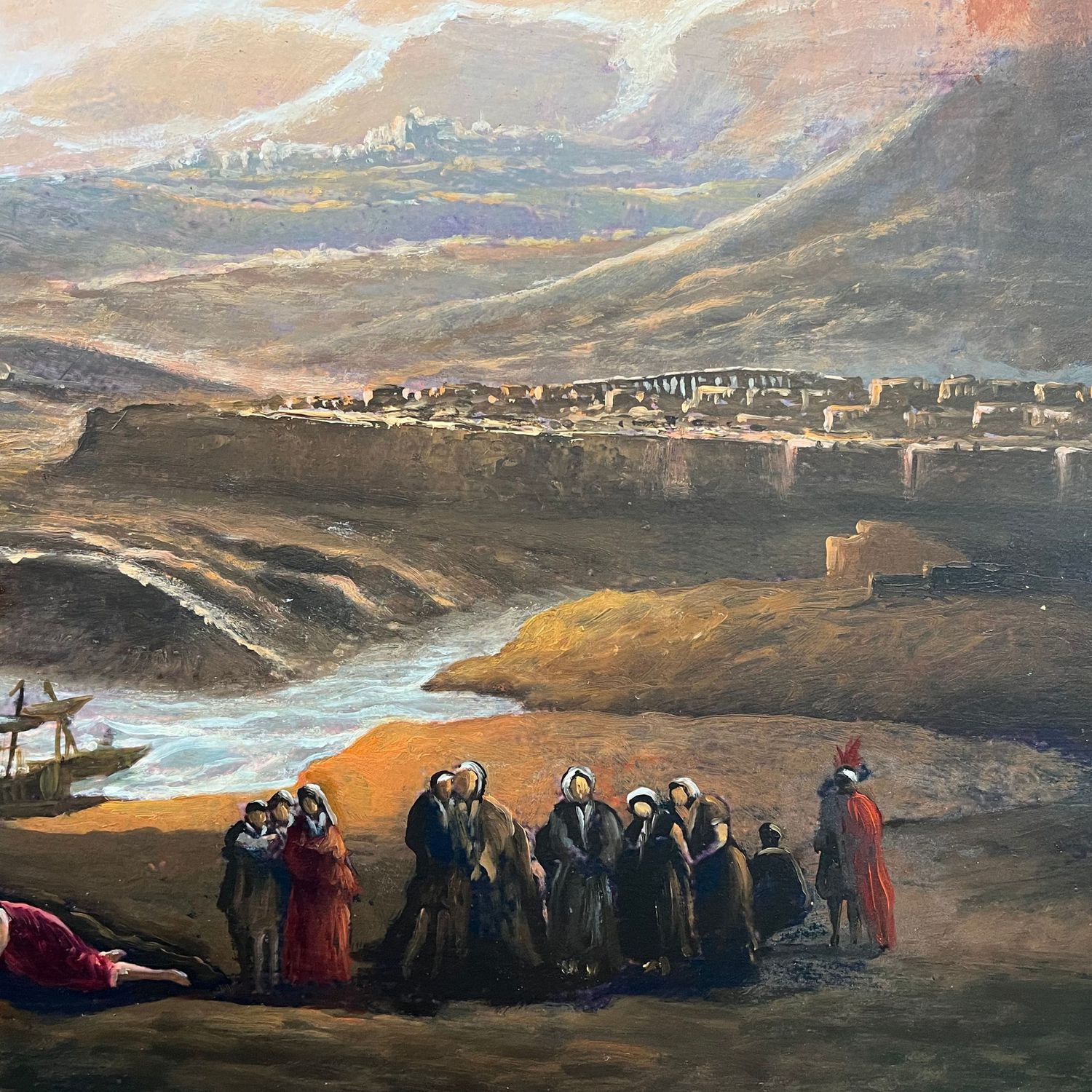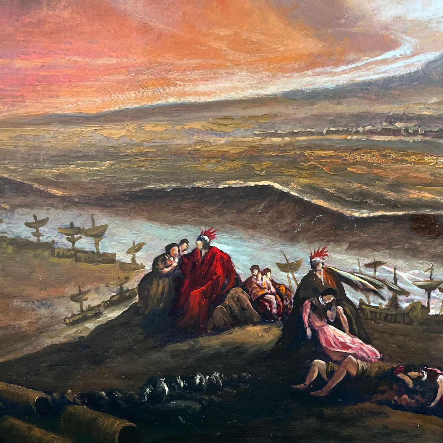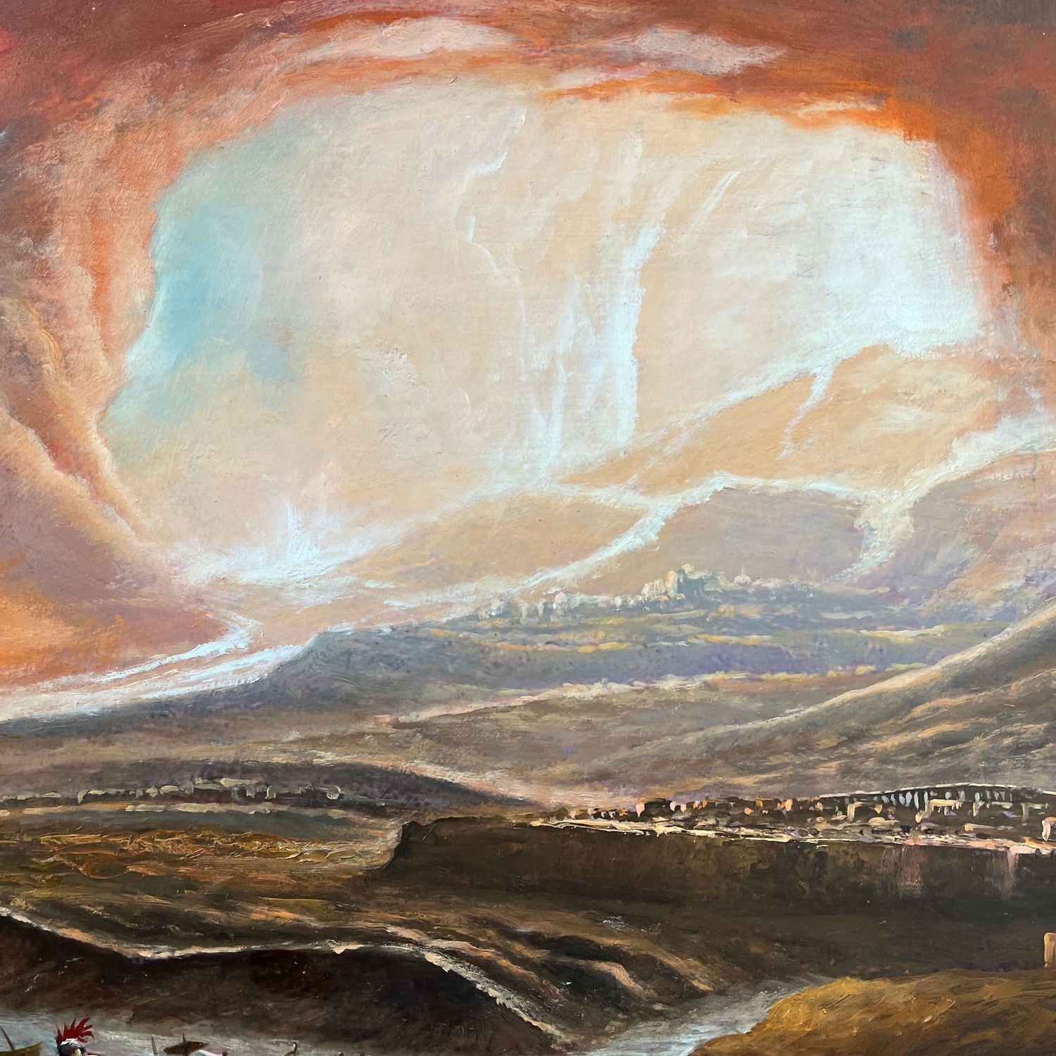 Antico dipinto olio su cartoncino, periodo XIX secolo scuola Italiana, raffigurante l'Apocalisse a Pompei e Ercolano.