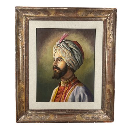 Dipinto olio su tela, periodo XX secolo scuola Italiana, raffigurante Uomo con turbante.